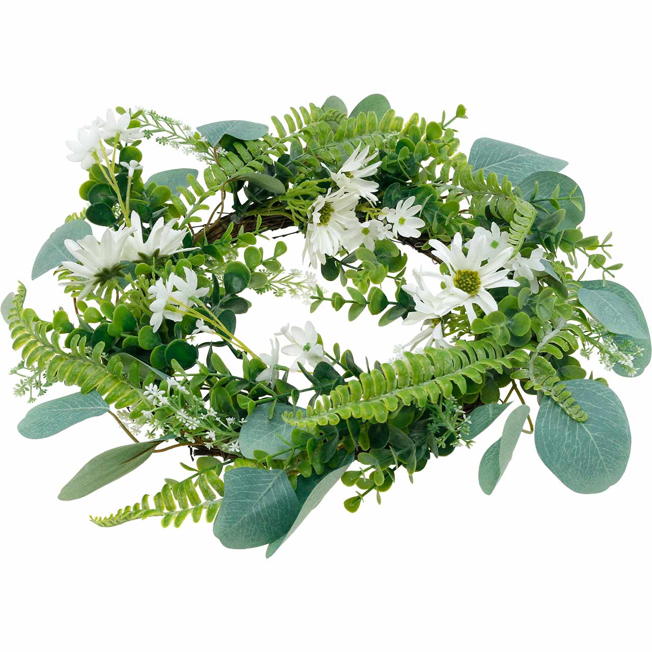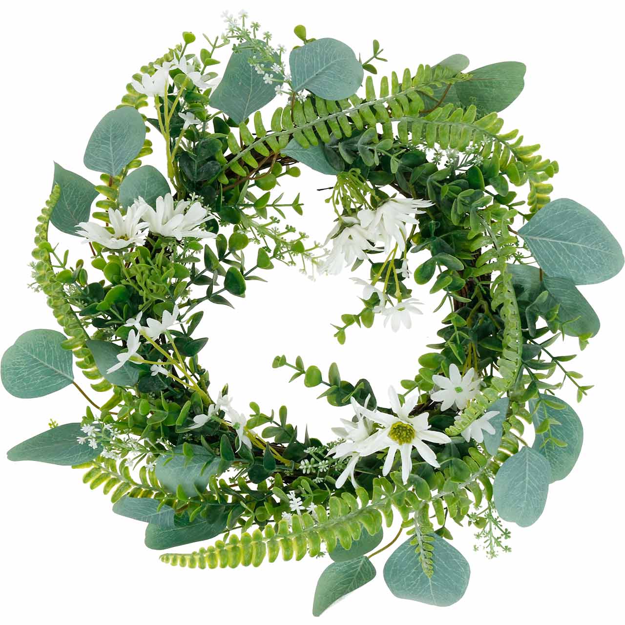 Künstlicher Eukalyptus-Kranz mit Farn, Kapmargeriten und Jasmin, Türkranz, Deko Kranz, Tischdeko