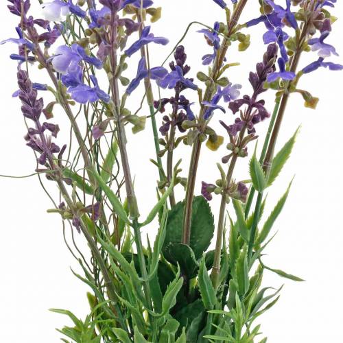 Der Bund aus Lavendelblumen mit Thymian und Gräsern ist aus Kunststoff gefertigt. Jeder der Aststiele besitzt zudem im Innern einen biegsamen Metallkern. Der Lavendelbund ist mit einem Band aus Jute verschnürt und besitzt eine ungefähre Gesamthöhe von 50 Zentimetern und einen Straußdurchmesser von circa 15 Zentimetern.Die Lavendelblüten sind etwa 6 – 17 Zentimeter lang.