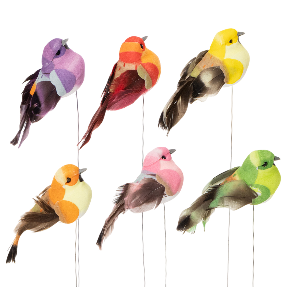 Vogel künstlich mit Draht für Basteln Bunte Dekoration zu jeder Jahreszeit 8cm 12St