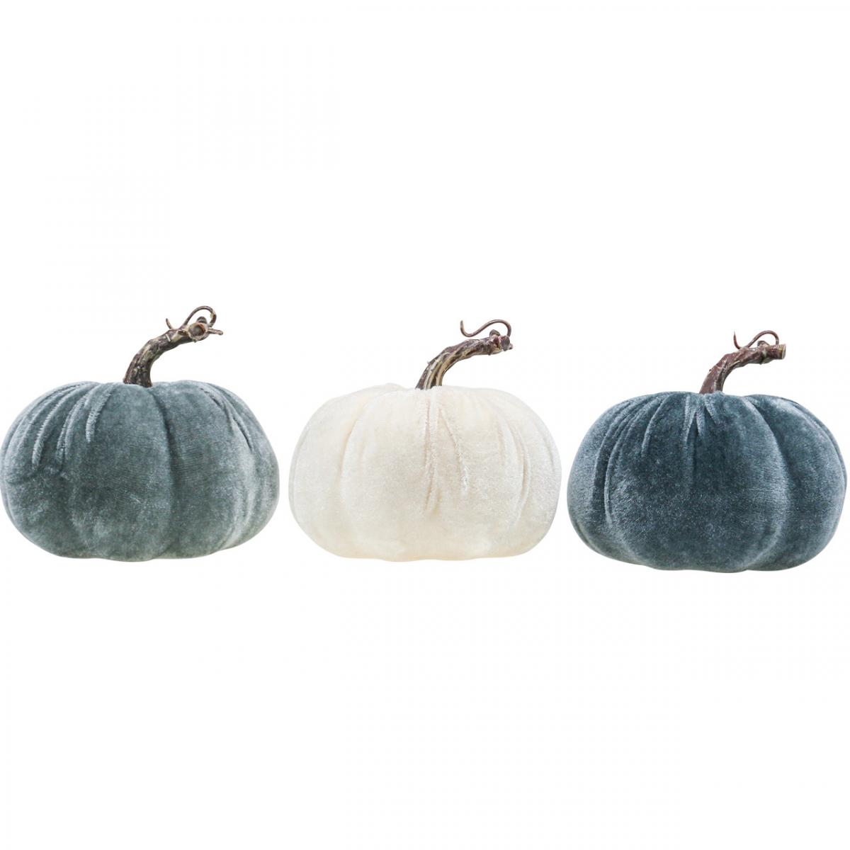 Die Kürbis-Deko besteht aus einem harten Kern und ist mit einer samtigen Ummantelung versehen. Dadurch erhalten die drei Kürbisse einen leichten Schimmer, was sie umso edler macht.