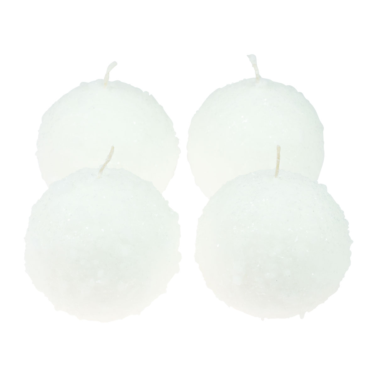 Winterzauber Kugelkerzen Weiß Schneeball Effekt Ø10cm 4er Set für Festliche Dekoration