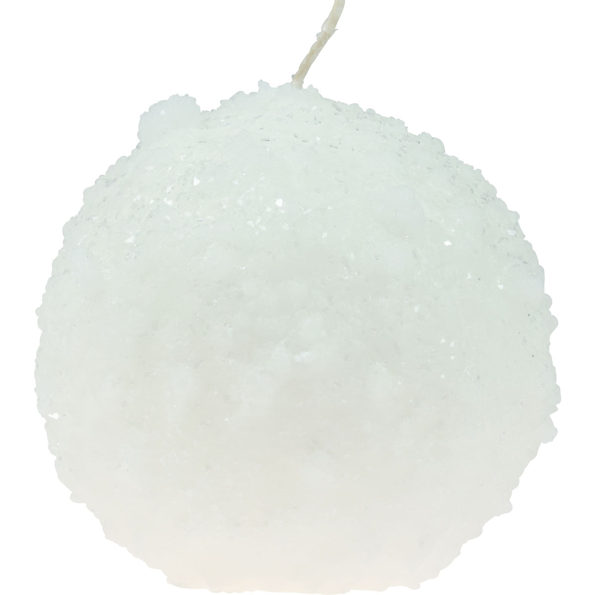 Produktname: Winterzauber Kugelkerzen Weiß Schneeball Effekt Ø10cm 4er Set für Festliche Dekoration
