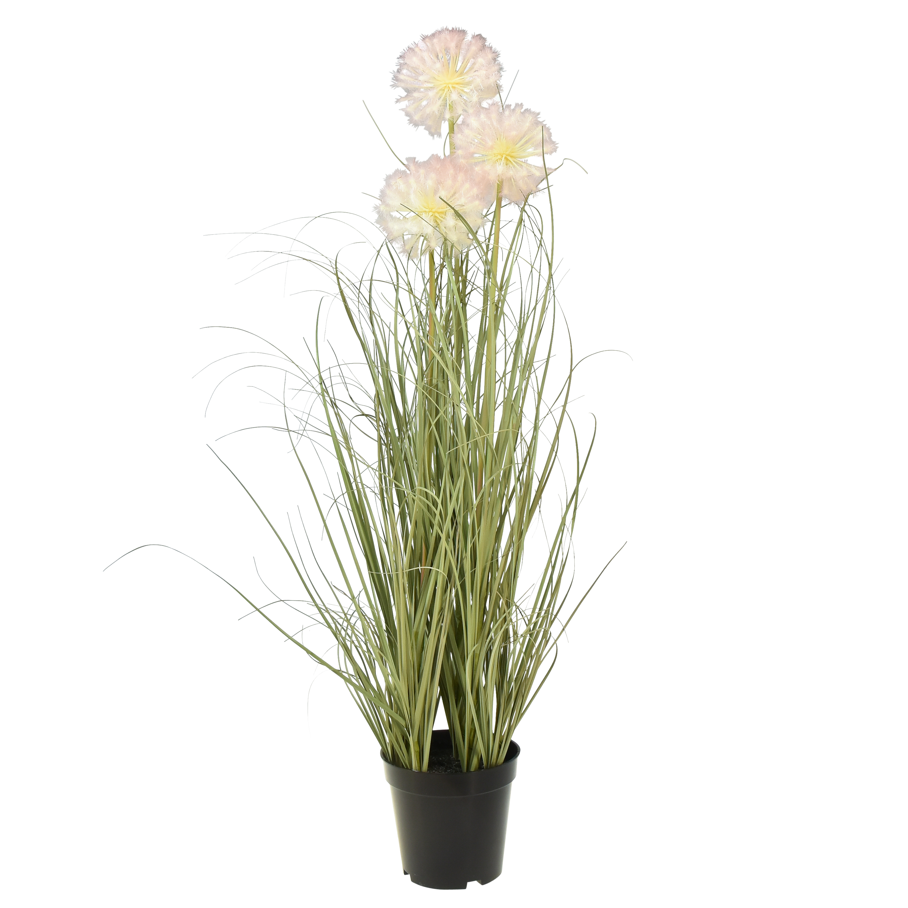 Die Kunstblumen-Deko der Kugelblume Allium in einem eleganten Weißton bildet mit ihren feinen Details und robusten Materialien eine exzellente Wahl für langanhaltende, pflegeleichte Arrangements. Als Zierlauch in Weiß integriert sich diese Kunstpflanze harmonisch in jede Umgebung und punktet mit ihrem schwarzen Kunststofftopf, der die Illusion verstärkt, Kunstblumen wie echt in Ihrem Zuhause zu haben. Ob alleinstehend in einem stilvollen Übertopf oder als Teil eines größeren Ensembles – dieser künstliche Zierlauch belebt Ihre Räume ohne jeglichen Pflegeaufwand.