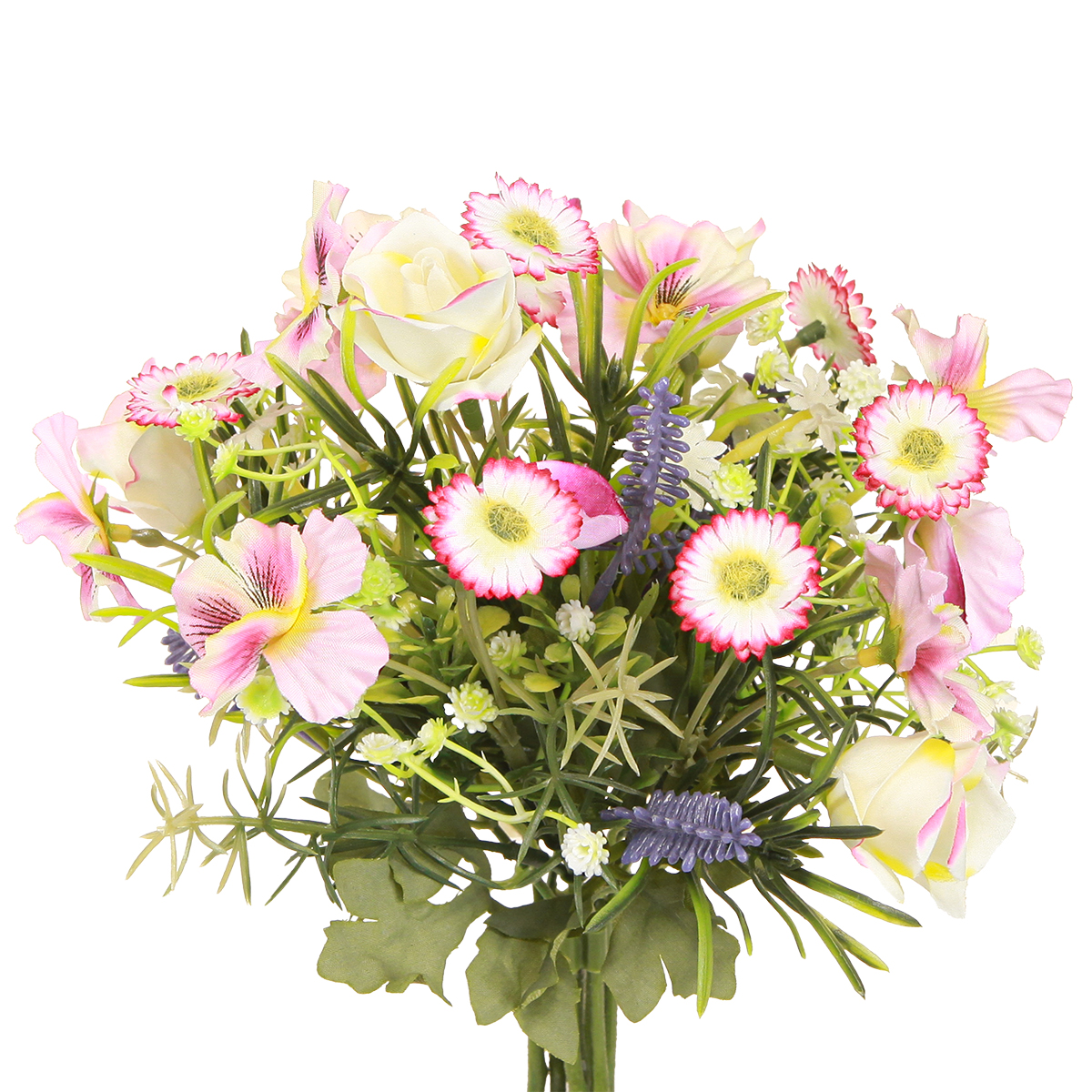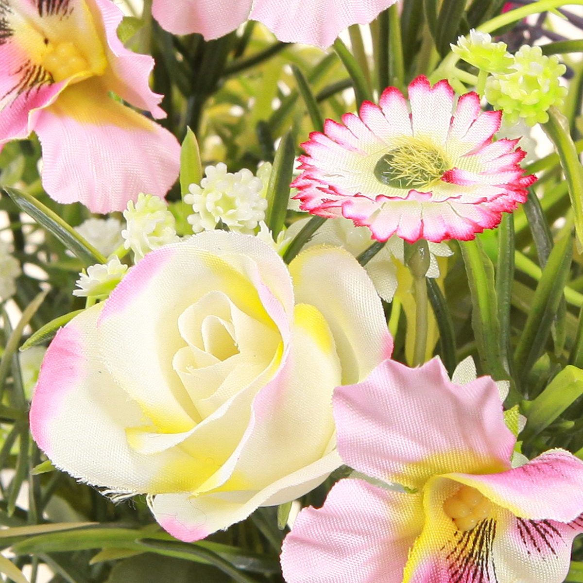 Kunstblumenstrauß in Creme, Rosa , Lila und Grün für Ihre stilvolle Wohnzimmerdekoration