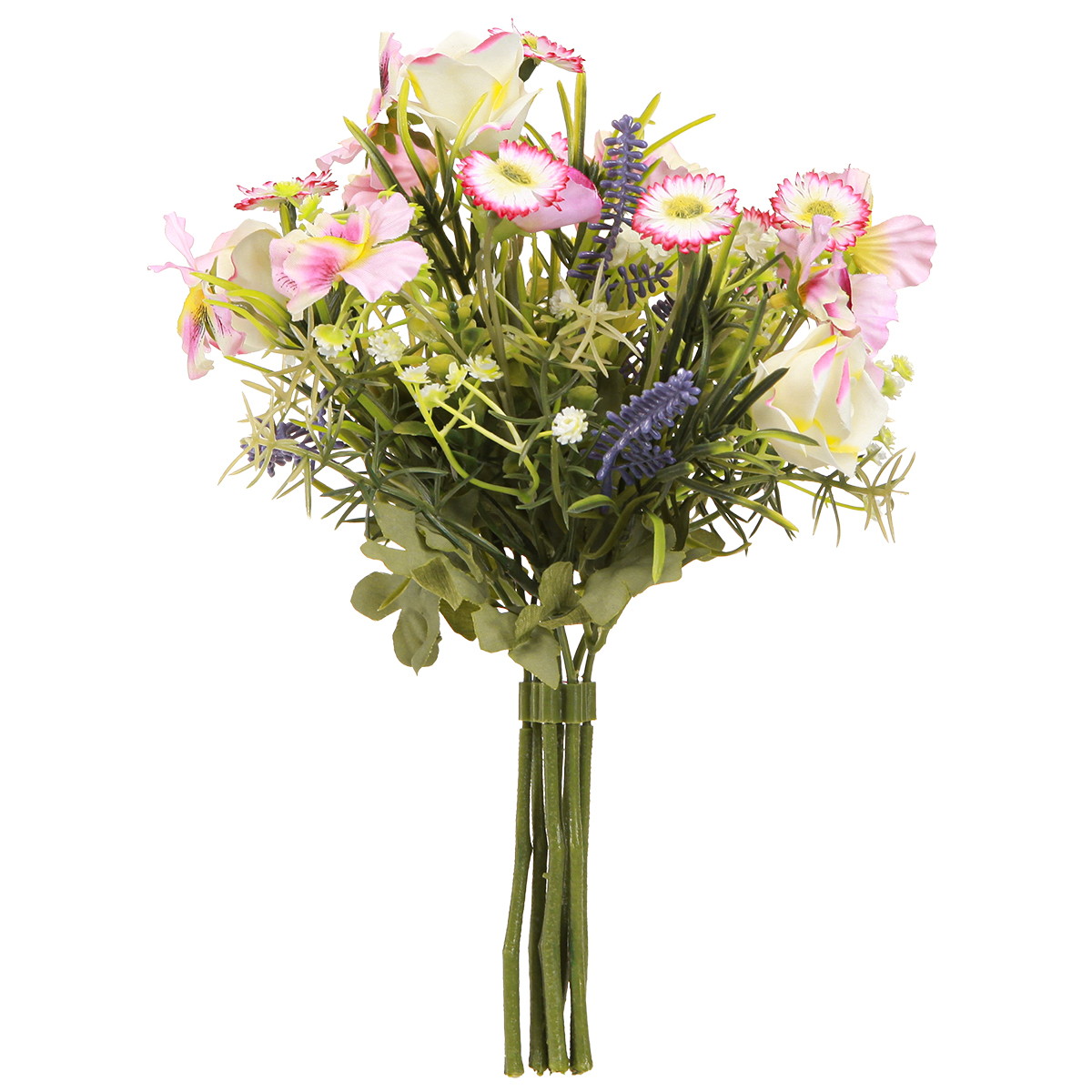 Produktname: Kunstblumenstrauß Creme Rosa Lila Grün Tischdeko elegant