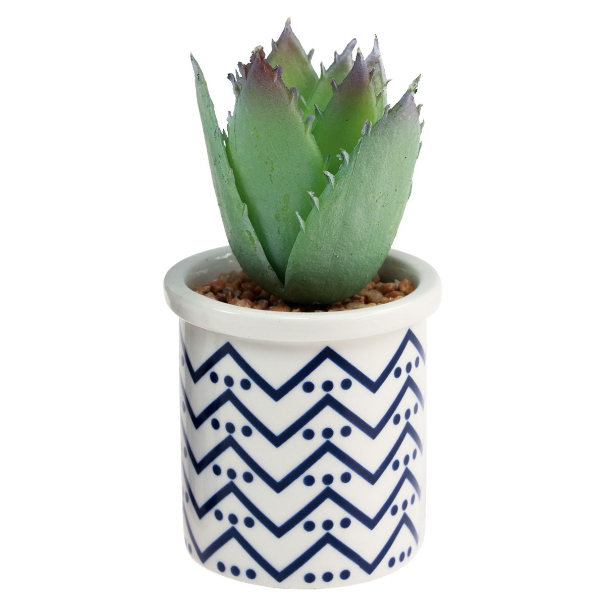 Die künstlichen Sukkulenten mit den schön gemusterten Blumentöpfen sind eine wunderbar langlebige Kunstblumen-Deko, die sich in jeder Räumlichkeit schön macht.
