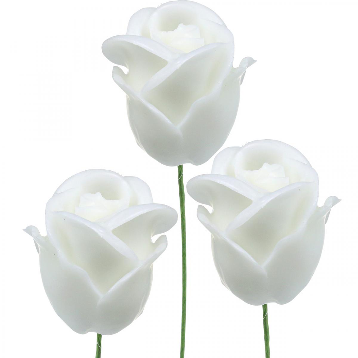 Produktname: Kunstrosen Weiß Wachsrosen Deko Rosen Wachs Ø6cm 18 St