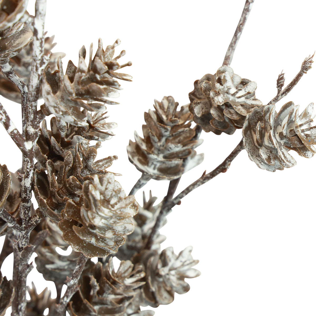 Jeder Kunstzweig teilt sich in mehrere weitere kleine Zweige, von denen jeder realistisch dicht mit künstlichen Lärchenzapfen besetzt ist. Die Kunstzweige sind geschickt geweißt, so dass der Eindruck verschneiter Lärchenzweige im Winter entsteht.