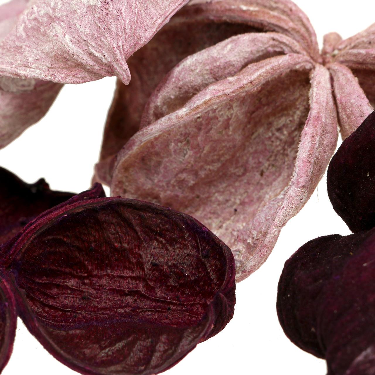 Sie erhalten den Landlotus Mix in Brombeer und Altrosa im großen Kunststoff-Beutel. Er enthält 50 getrocknete Früchte in zwei Farben. Die Größe schwankt zwischen etwa 9,5 Zentimetern und etwa 13 Zentimetern.