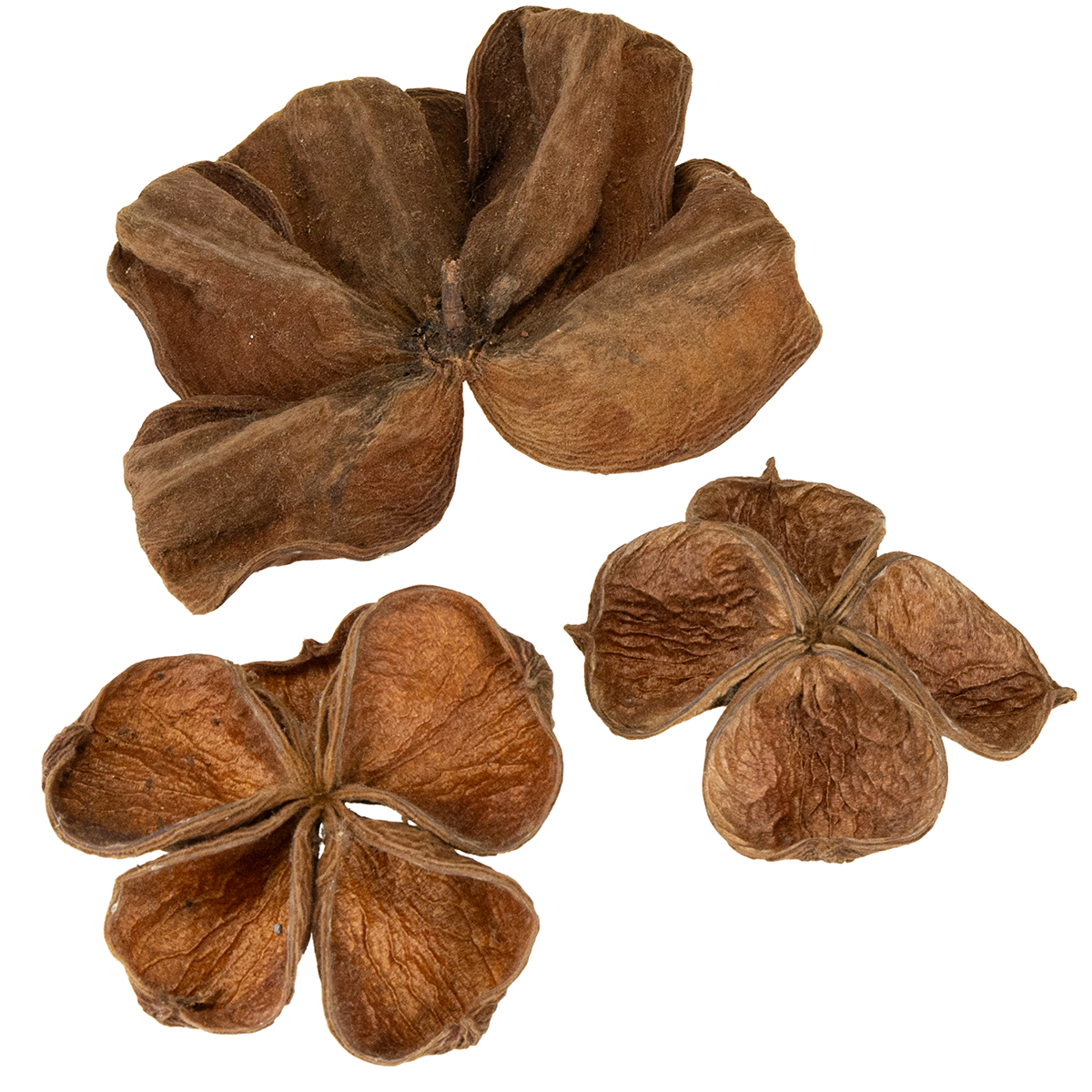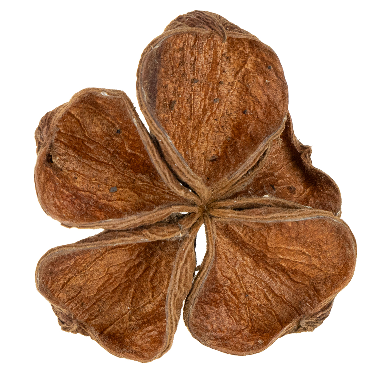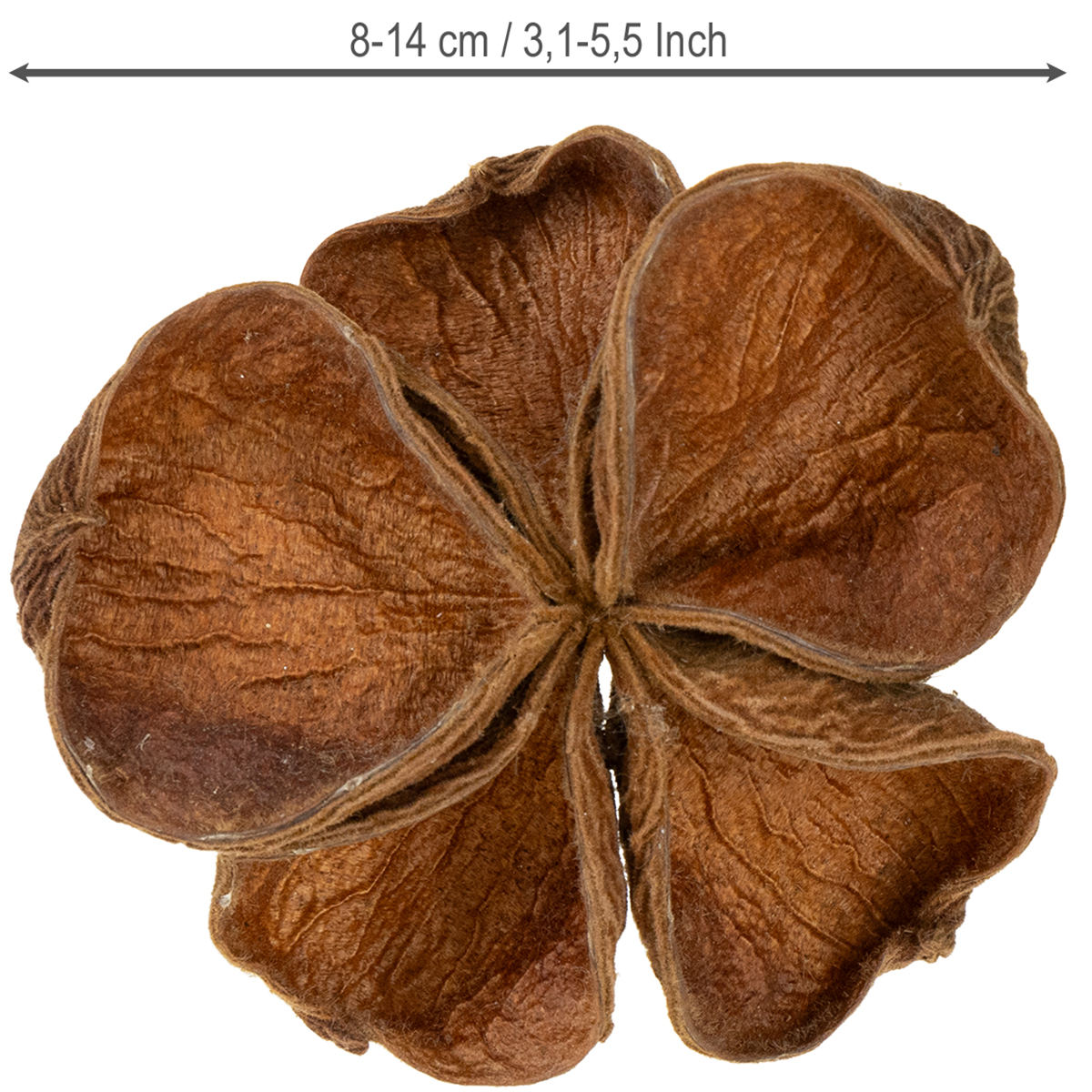 Ein beliebter Naturartikel aus der Trockenfloristik! Der getrocknete Landlotus, botanisch auch Sterculia genannt, ist die sternförmige Fruchtgruppe des tropischen Baumes mit dem unrühmlichen Namen Stinkbaum. Aber keine Sorge, diese angebotenen Früchte riechen nicht! Weil die geöffneten Fruchtkapseln wie eine Lotusblume aussehen, werden Sie im Volksmund Landlotus genannt.