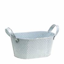Artikel Schalen zum Bepflanzen, Dekotopf mit Spitzendekor, Metallgefäß mit Griffen, oval Weiß, Silbern Shabby Chic L25,5/20/15cm H7cm 3er-Set Artikel Schalen zum Bepflanzen, Dekotopf mit Spitzendekor, Metallgefäß mit Griffen, oval Weiß, Silbern Shabby Chic L25,5/20/15cm H7cm 3er-Set