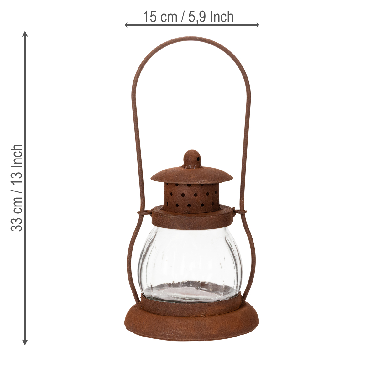 Sehnen Sie sich nach einer warmen, einladenden Atmosphäre in Ihrem Zuhause oder Ihrem Garten? Stellen Sie sich vor, wie diese rustikale Laterne aus echtem Metall und Glas den Raum mit weichem, flackerndem Kerzenschein erfüllt. Ob als dekoratives Highlight auf der Terrasse, als stimmungsvolle Beleuchtung bei Gartenpartys oder als gemütliche Tischdeko bei einem romantischen Dinner – diese Laterne wird garantiert zum Blickfang. Einfach zeitlos schön! Dank ihres Vintage-Designs in edlem Rostbraun fügt sie sich harmonisch in jede Umgebung ein, sei es im Landhausstil, Boho oder Rustikal. Ein echtes Must-have für Liebhaber stilvoller Dekoration!