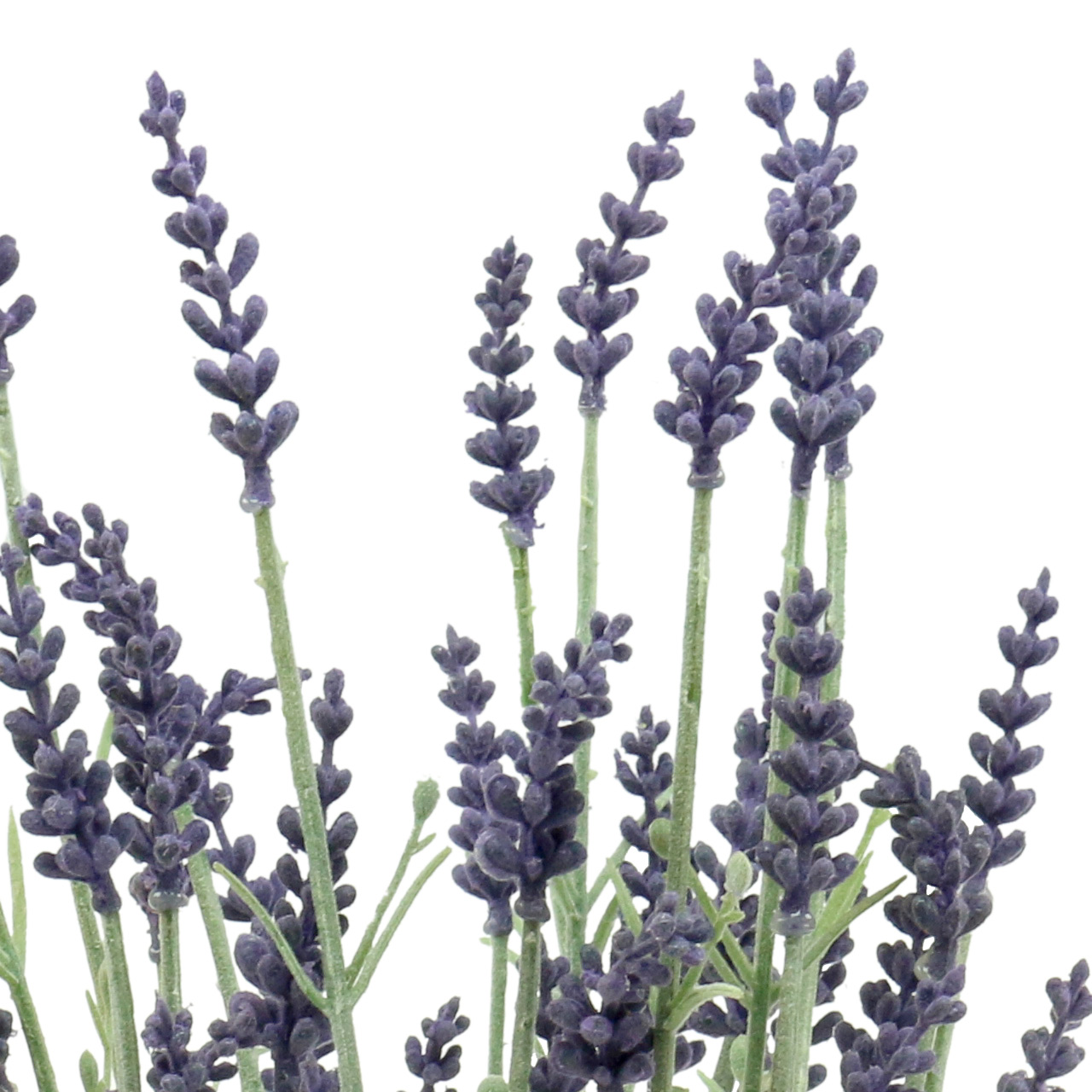 Der künstliche Lavendelbusch besteht aus Kunststoff, weist einen Drahtkern auf und hat eine Gesamtlänge von etwa 51 Zentimetern.
