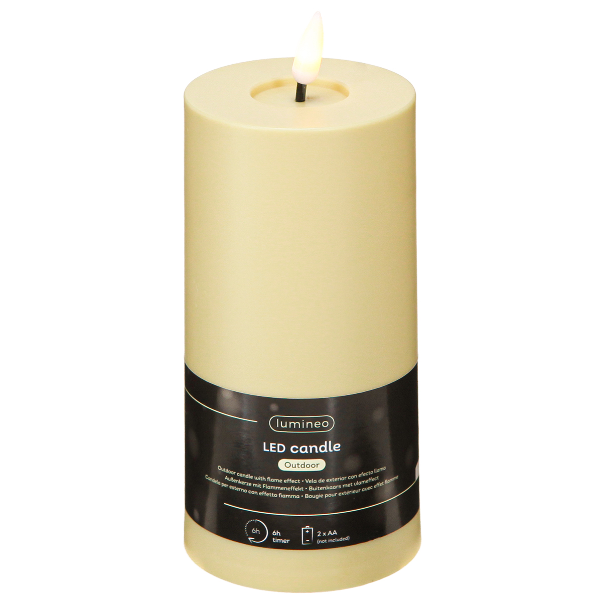 LED Kerze mit Timer Grünbeige Outdoor Ø7,5cm H18cm