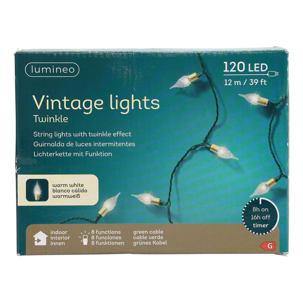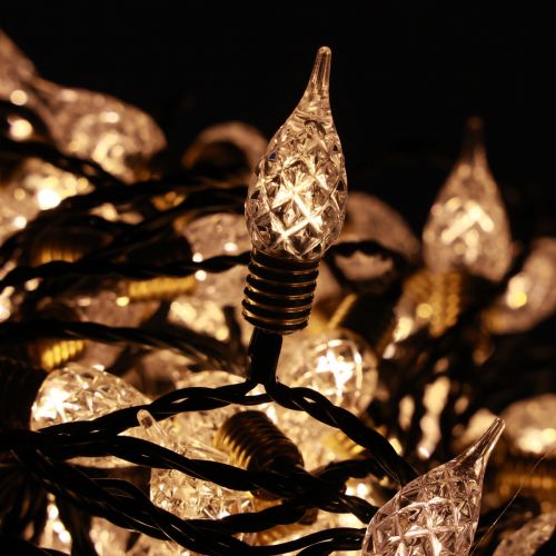 Die Fassungen der Lämpchen erinnern an die von Glühlampen. Perfekt für Weihnachten im Vintage-Look! Etwa 12 Meter spannt sich die LED-Kette von Lämpchen zu Lämpchen. Nochmals circa 3 Meter beträgt die Länge bis zur Zuleitung und dem Transformator.