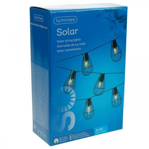 Mit der schwarzen LED-Solar-Lichterkette erhalten Sie eine stimmungsvoll leuchtende Gartendeko. Die insgesamt acht schwarzen Lämpchen im Retro-Design sind durch ein wasserdichtes Kabel verbunden und durch das Panel für die Nutzung draußen bestimmt. Stecken Sie die Solarzelle an einen sonnigen Ort. Sobald es zu dämmern beginnt, leuchten die LED-Lichter im Garten auf. Oder hängen Sie die warmweiße LED-Beleuchtung lieber auf dem Balkon auf und genießen lauschige Sommerabende bei atmosphärischem Lichtschein? Durch den Ein-/Aus-Schalter können Sie die Lichtergirlande aber auch abschalten, wenn es mal dunkel bleiben soll.Die Solarlichterkette ist außerdem einfach zu transportieren und kommt so gerade recht, wenn Sie beim Zelten oder Grillen Partybeleuchtung brauchen oder zum Gartenfest eingeladen werden. Da die Außenbeleuchtung mit LED keinen Stromanschluss braucht, bringen die zuvor in der Sonne aufgeladenen Solarlampen zuverlässig Licht ins Dunkel!