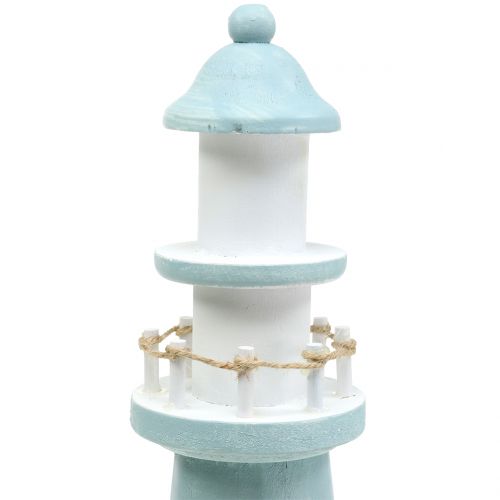 Leuchtturm zum Stellen, Maritime Holzdeko Natur, Blau-Weiß Shabby Chic H54cm
