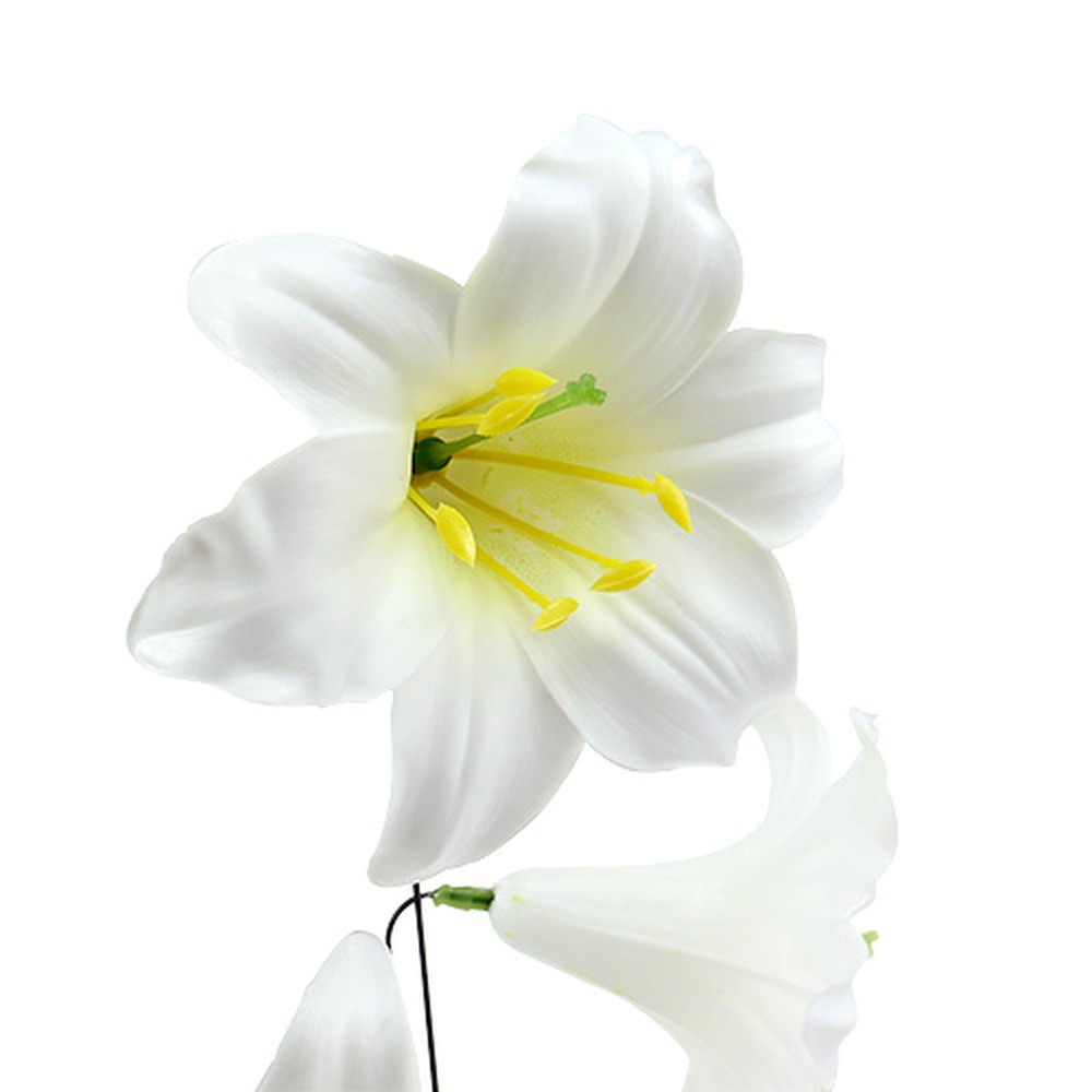 Die Lilie am Draht in mittlerer Größe befindet sich in einem Verbund von 25 Stück hochwertiger Kunstblumen. Die Länge der einzelnen künstlichen Pflanzen für die Trauerfloristik beträgt inklusive Steckdraht etwa 35 Zentimeter, wobei der Durchmesser der Blüten circa 12 Zentimeter beträgt. Somit sind die Deko-Lilien auch wunderbar als Tischmuck für eine Trauerfeier geeignet. Aber auch in einer eleganten Vase wissen die edlen und eleganten Kunstpflanzen zu überzeugen.