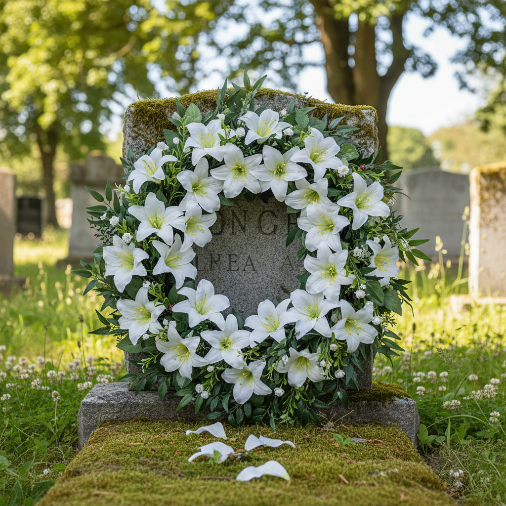 Verwendungszweck: Gedenkfloristik-Artikel für Friedhofsschmuck, Trauergestecke, Grabschmuck und florale Dekoration.