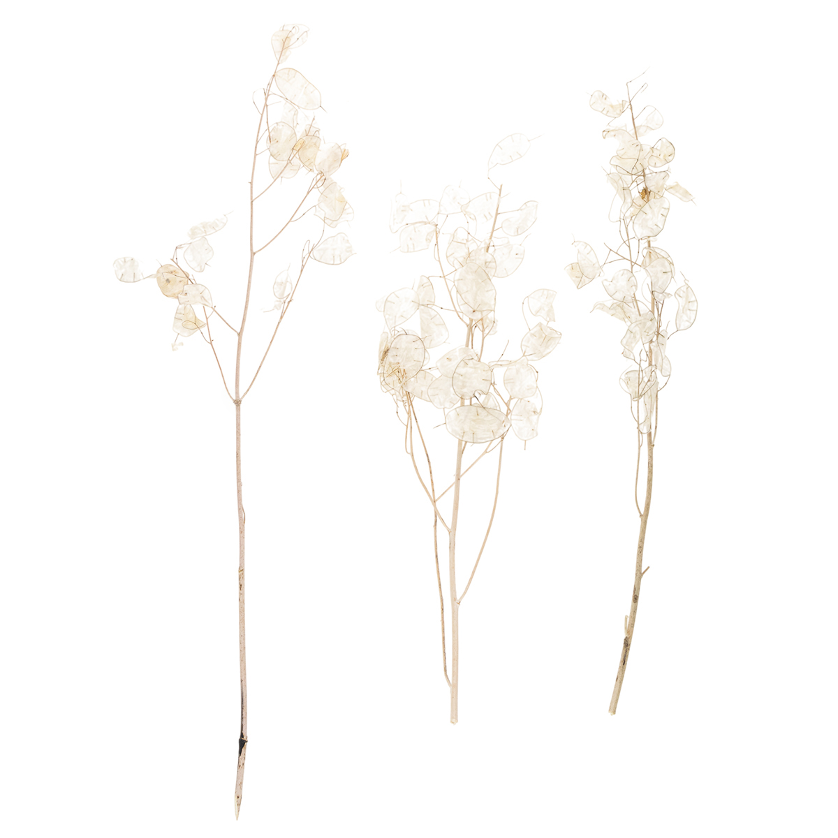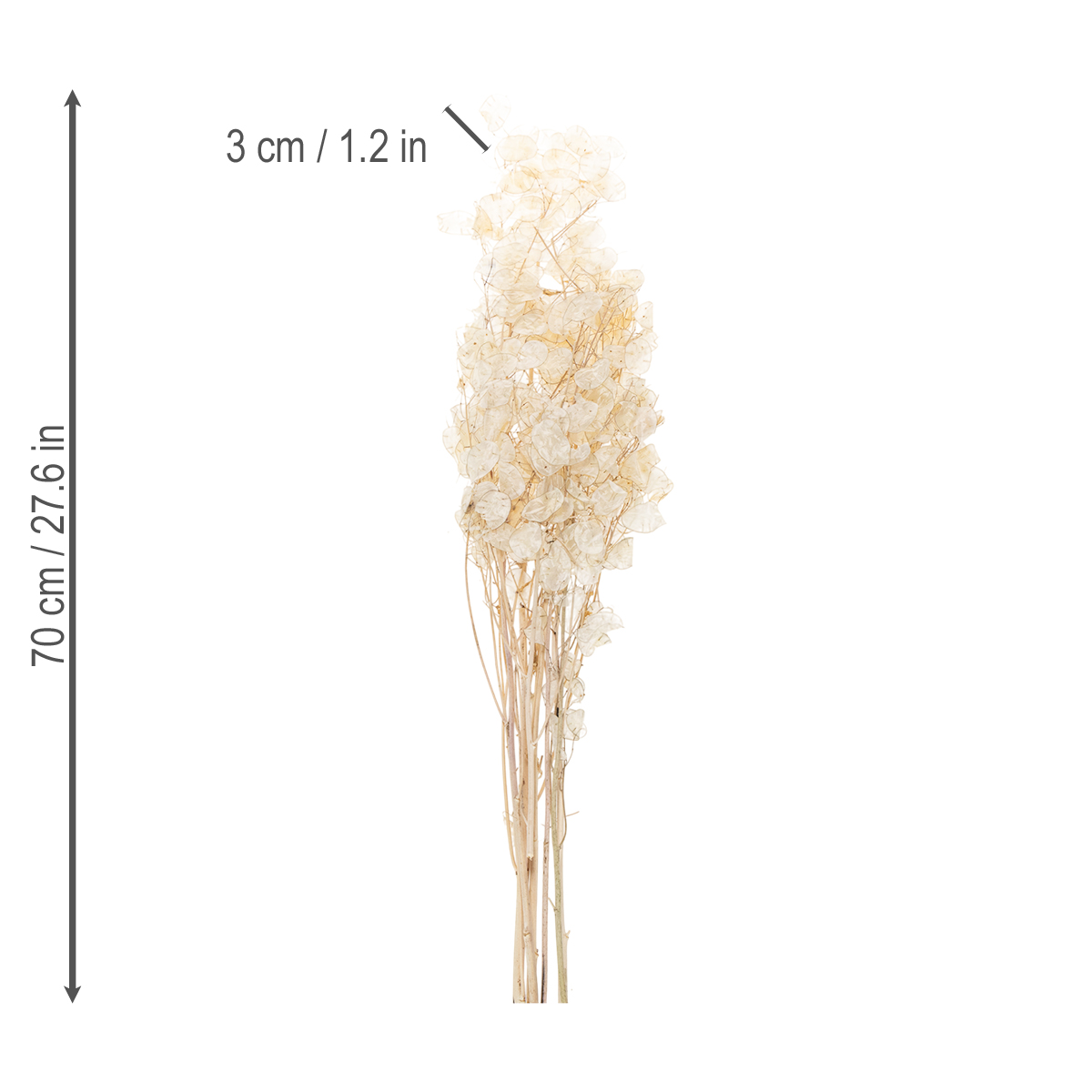 Wenn Sie das Silberblatt Lunaria getrocknet kaufen, bekommen Sie mehrere Zweige der Trockendeko im Bund zu einem Nettogewicht von circa 30 Gramm in Blumenfolie.