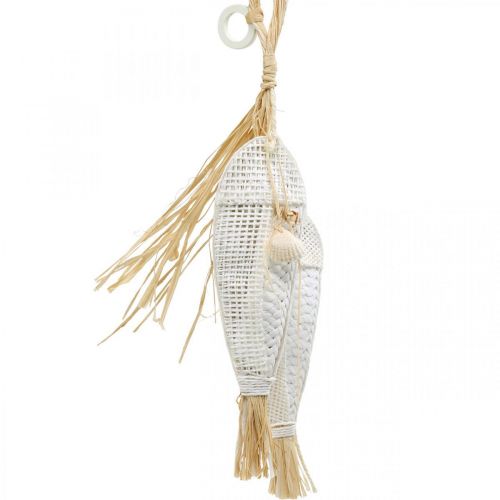 Boho Makramee Blumenampel Hängedeko Fensterdeko mit Blumenschaukel Brett 40x15cm im Natur-Weiß