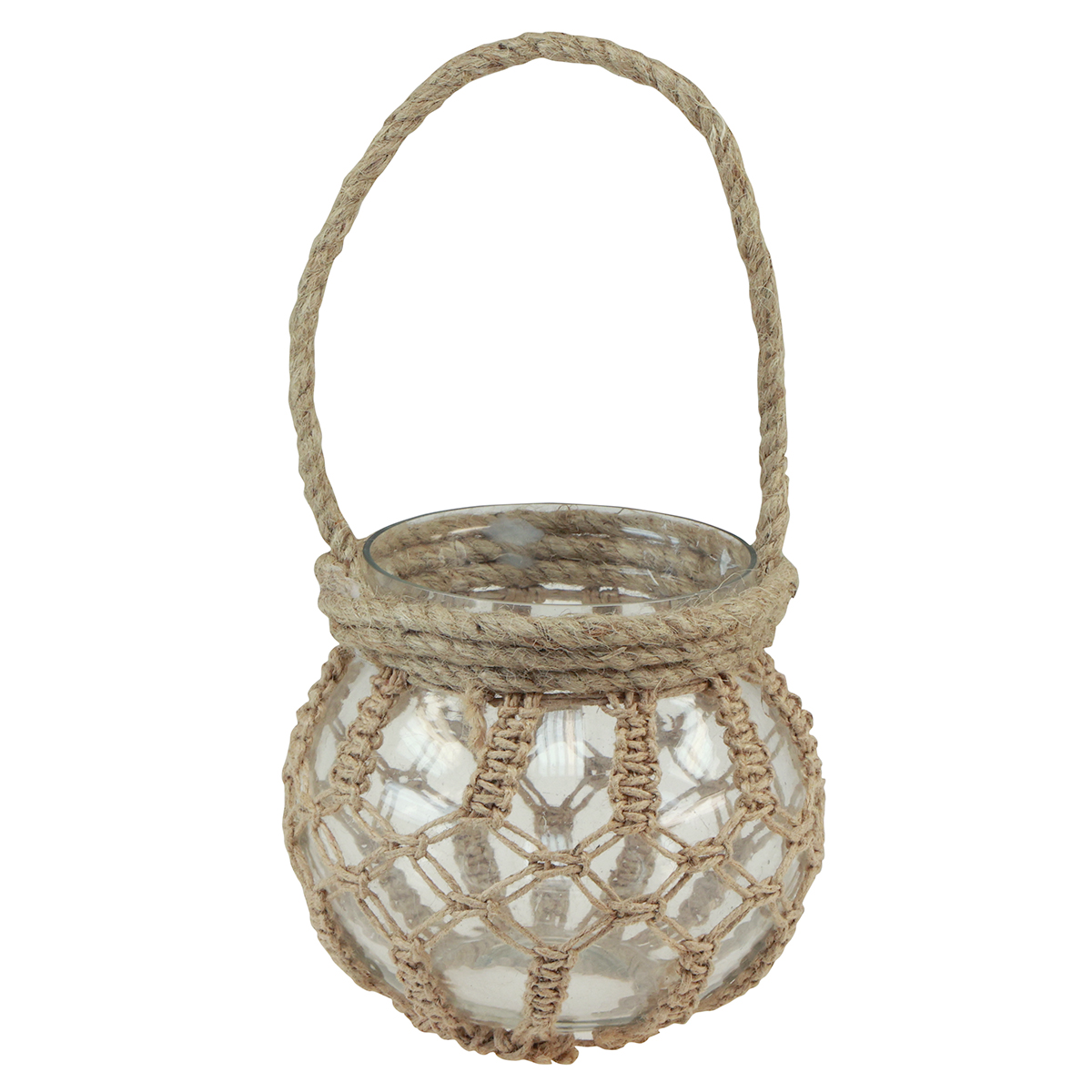 Makramee Glas Deko Hängedeko Glastopf Klar Ø16cm H29cm