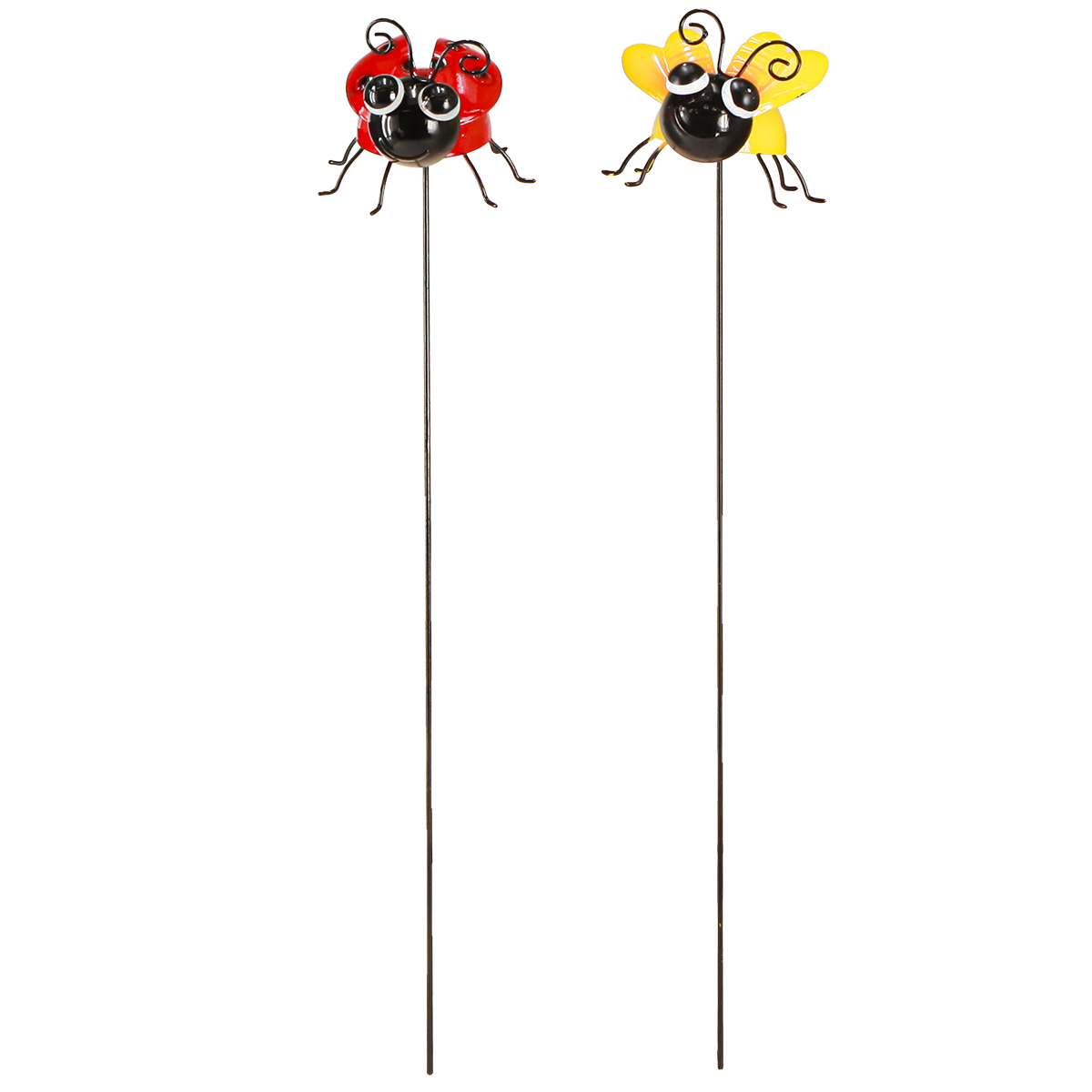 Marienkäfer und Biene mit Stab Gartendeko Metall 46cm 2St