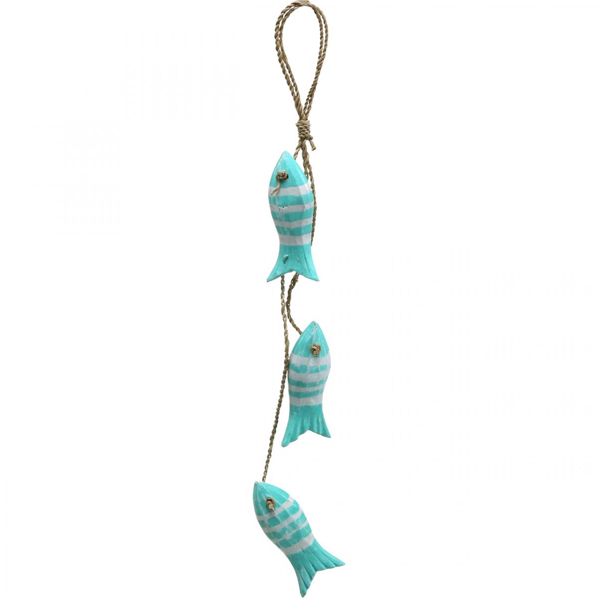 Maritime Deko Hänger Holzfische zum Hängen Klein Türkis L31cm