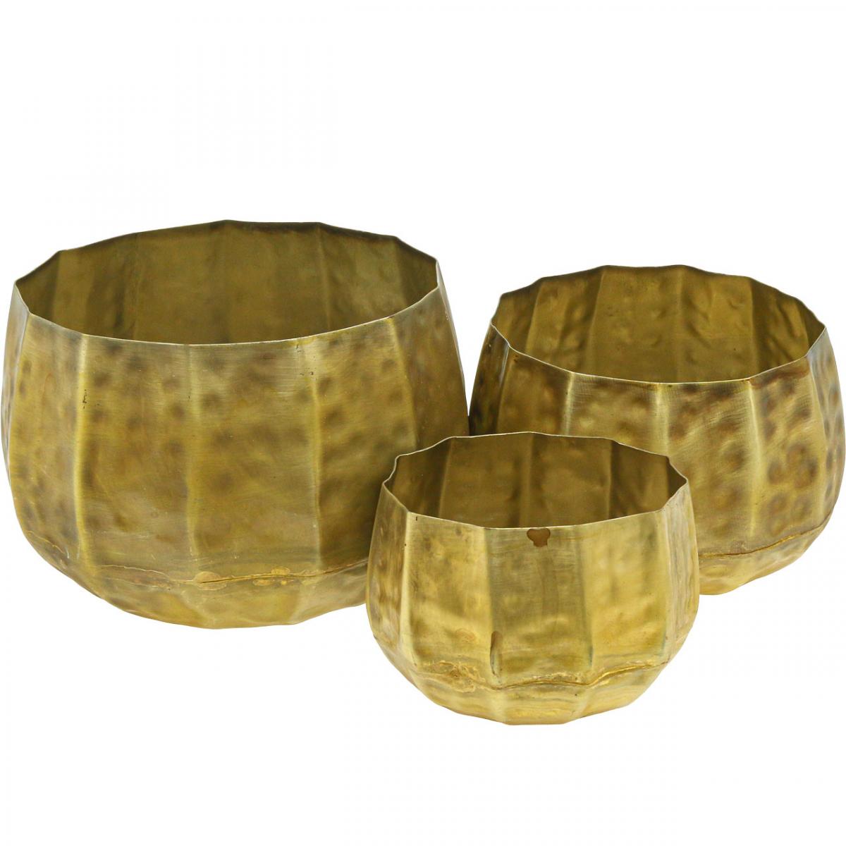 Produktname: Metall Deko Blumentopf Messing Ø22,5/18,5/14,5cm 3er-Set