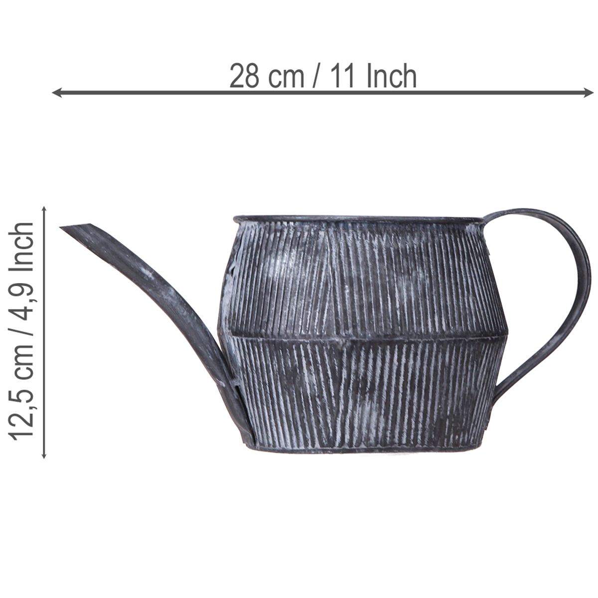 Unsere stilvolle Metall-Kanne als Deko mit Rillen-Verzierung in edlem Schwarz ist ein absolutes Muss für Liebhaber von Vintage und Retro. Mit einer Höhe von etwa 12,5 cm fügt sich diese charmante Metalldeko nahtlos in jede Einrichtung ein. Die feinen Rillen und die einzigartige, grau gewaschene Metalloberfläche verleihen der Kanne einen authentischen, nostalgischen Charakter, der an längst vergangene Zeiten erinnert. Als vielseitig einsetzbarer Dekoartikel passt die Kanne perfekt in ein modernes Interieur, das Akzente im Industrial- oder Shabby-Chic-Stil setzen möchte. Ihr schlichtes, aber elegantes Design macht sie zu einem idealen Begleiter im Wohnzimmer, auf der Fensterbank oder auch als ausgefallene Tischdekoration. Kombinieren Sie diese Kanne mit anderen Metallgefäßen oder Kerzenhaltern, die in der vielfältigen Produktpalette bei Floristik24 zu finden sind, um ein harmonisches Gesamtbild zu schaffen. Diese Kanne ist nicht nur ein dekoratives Highlight, sondern bietet auch zahlreiche Verwendungsmöglichkeiten in Ihrem Zuhause.