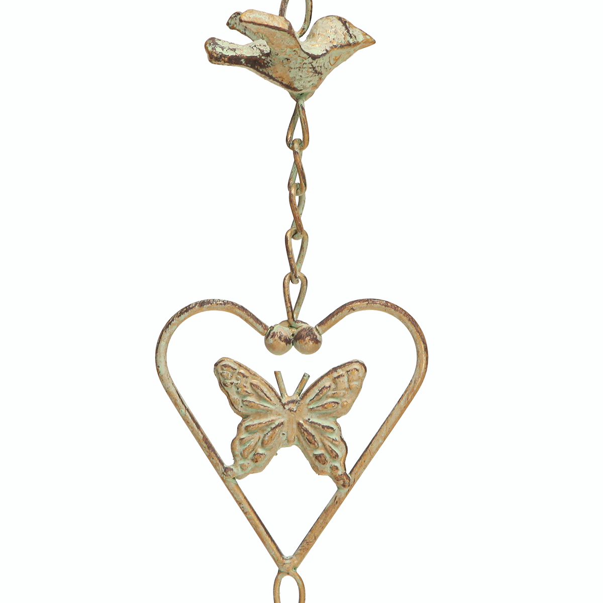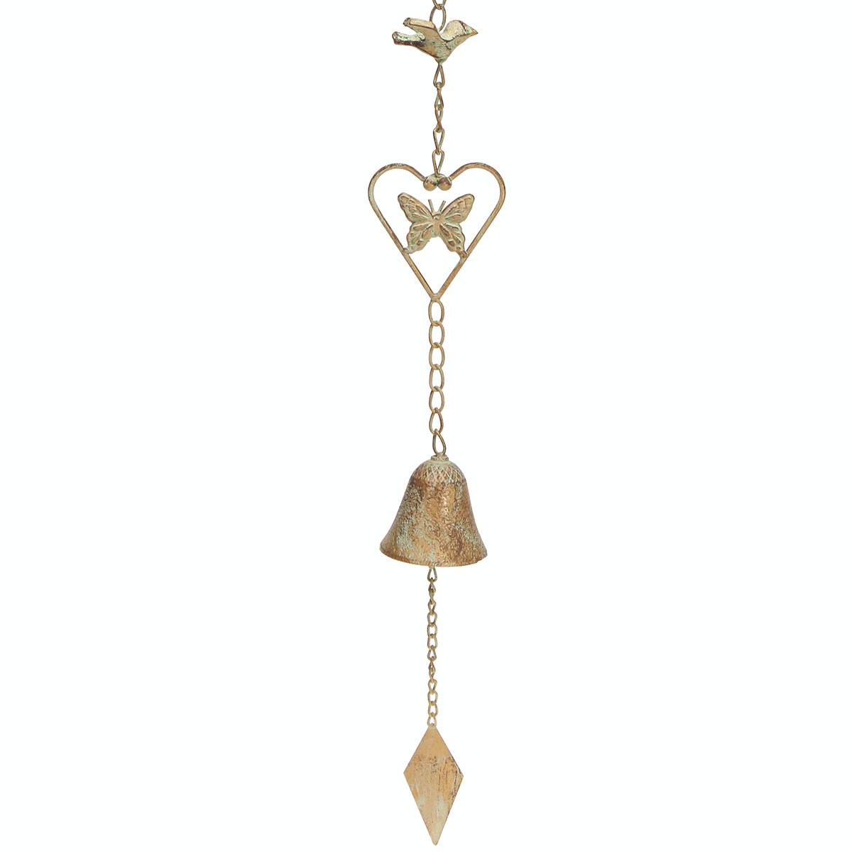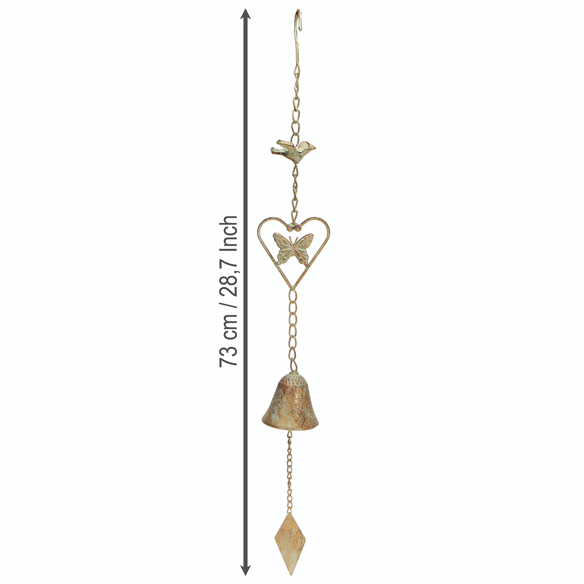 Produktname: Metall Windspiel mit Herz und Glocke Gartendeko Antik 72cm