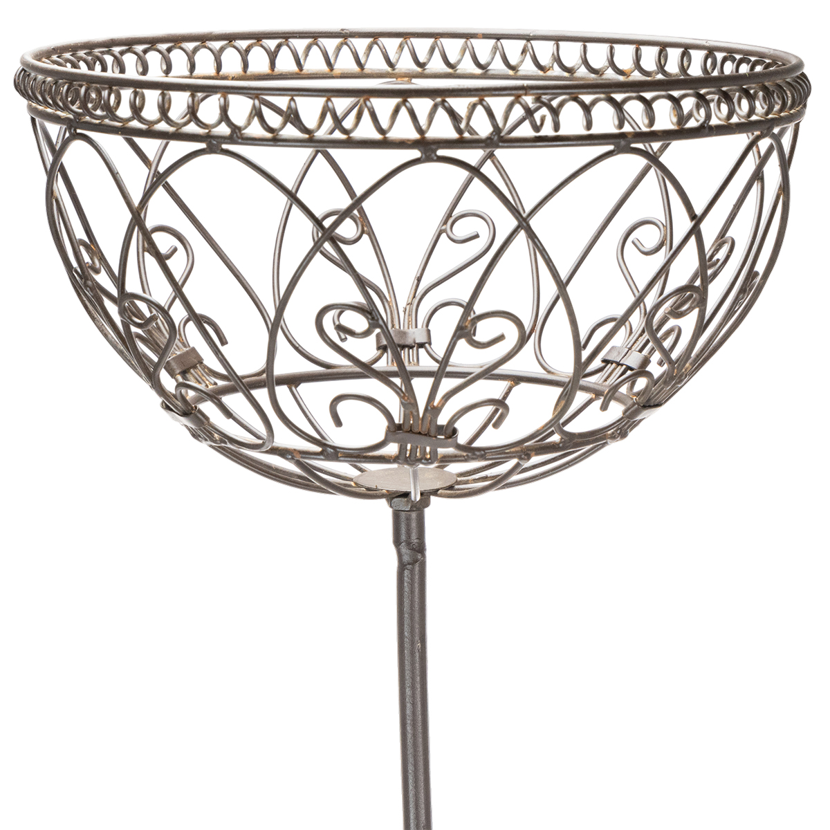 Dieser Metallkorb auf dem Stab ist viel mehr als nur einfache Gartendeko – er ist ein einzigartiger Dekorationsartikel, der Geschichten erzählt. Seine kunstvolle Verarbeitung mit geschwungenen Linien und filigranen Details spiegelt die Eleganz des Vintage-Stils wider. Nutzen Sie ihn als dekorativen Korb, um frische Blumen, Kräuter oder saisonalen Schmuck wie Osterdekoration gekonnt in Szene zu setzen. Alternativ fungiert er als stilvolle Garten-Metall-Deko und begeistert als zentraler Blickfang neben Ihren Gartenmöbeln. Die braune Färbung harmoniert wunderbar mit Holz, Rattan oder anderen Naturmaterialien und lässt sich flexibel mit Vasen, Kunstblumen oder Kränzen kombinieren.