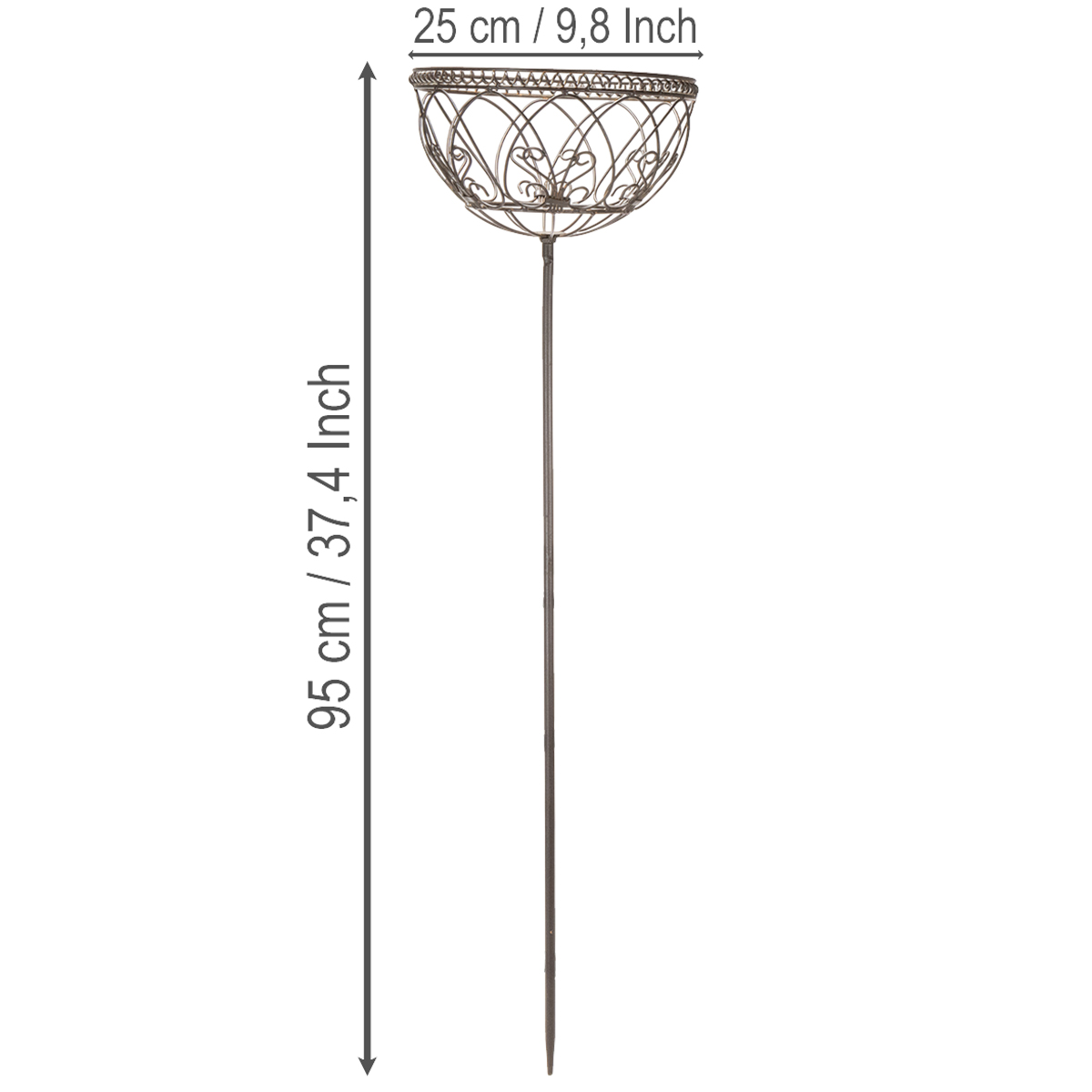 Verleihen Sie Ihrem Garten, Ihrer Terrasse oder Ihrem Balkon mit diesem dekorativen Metallkorb im Vintage-Stil eine romantische Note. Der hochwertige Gartenkorb aus robustem, braun lackiertem Metall ist perfekt für den geschützten Außenbereich geeignet. Mit seinen Maßen von 95 Zentimetern Höhe und einem Durchmesser von 25 Zentimetern wirkt er besonders elegant und fällt sofort ins Auge. Ob als dekorative Schale im Garten, stilvolle Rankhilfe im Vintage-Stil oder Blumentopfhalter für Ihre Terrasse – dieser Metallkorb schafft eine charmante Atmosphäre und überzeugt durch seine Vielseitigkeit.