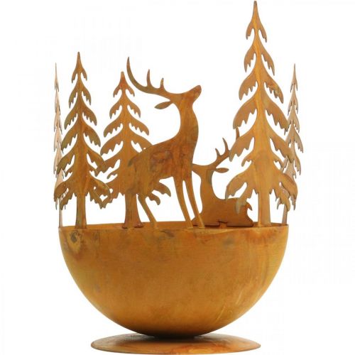 Metallschale mit Rehen, Walddeko für den Advent, Deko-Gefäß Edelrost Ø25cm H29cm