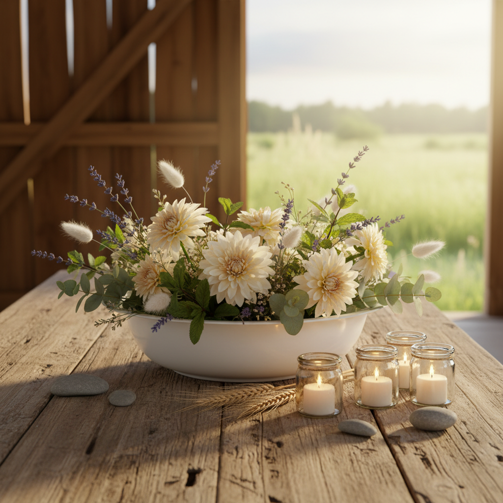 Als Gesteckunterlage für Trockendeko mit urigem Charme kommt die Schale in Weiß daher gut zur Geltung. Als Basis dient die Schale aber auch für viele andere Deko-Ideen mit Trockenblüten, Dekosand oder Dekokies.