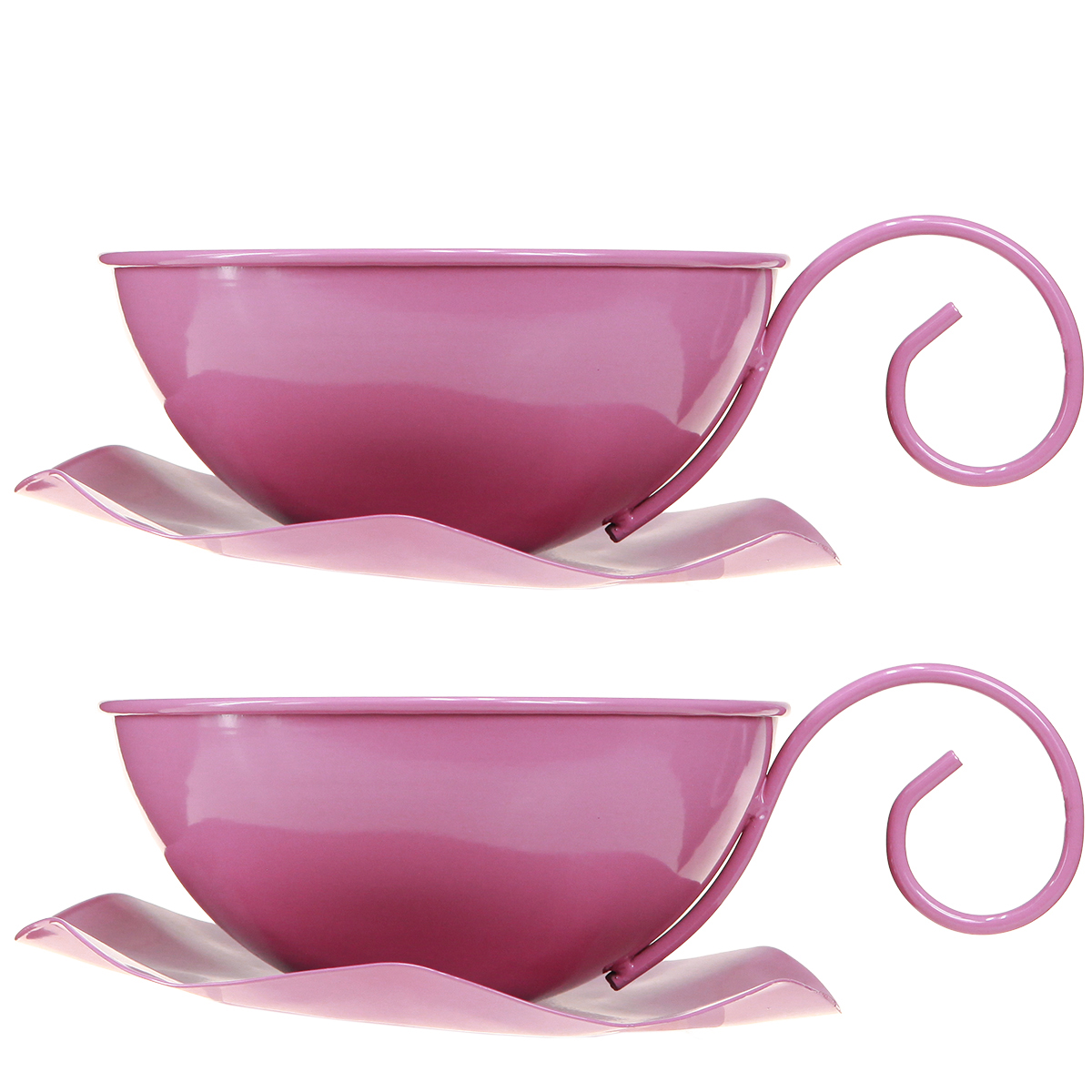 Metalltasse Ø16cm H9cm Deko Tasse mit Unterteller Pink 2St