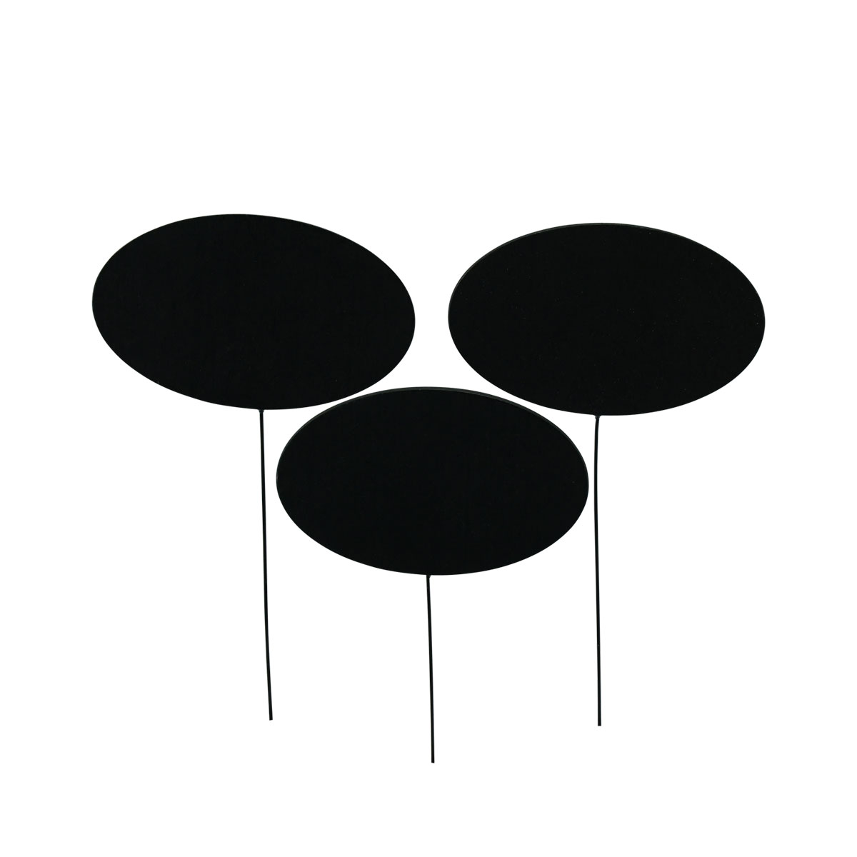 Produktname: Mini Kreidetafel Schwarz Oval Metall Blumenstecker 7,5x4,5cm 12 Stück für Floristik und Deko