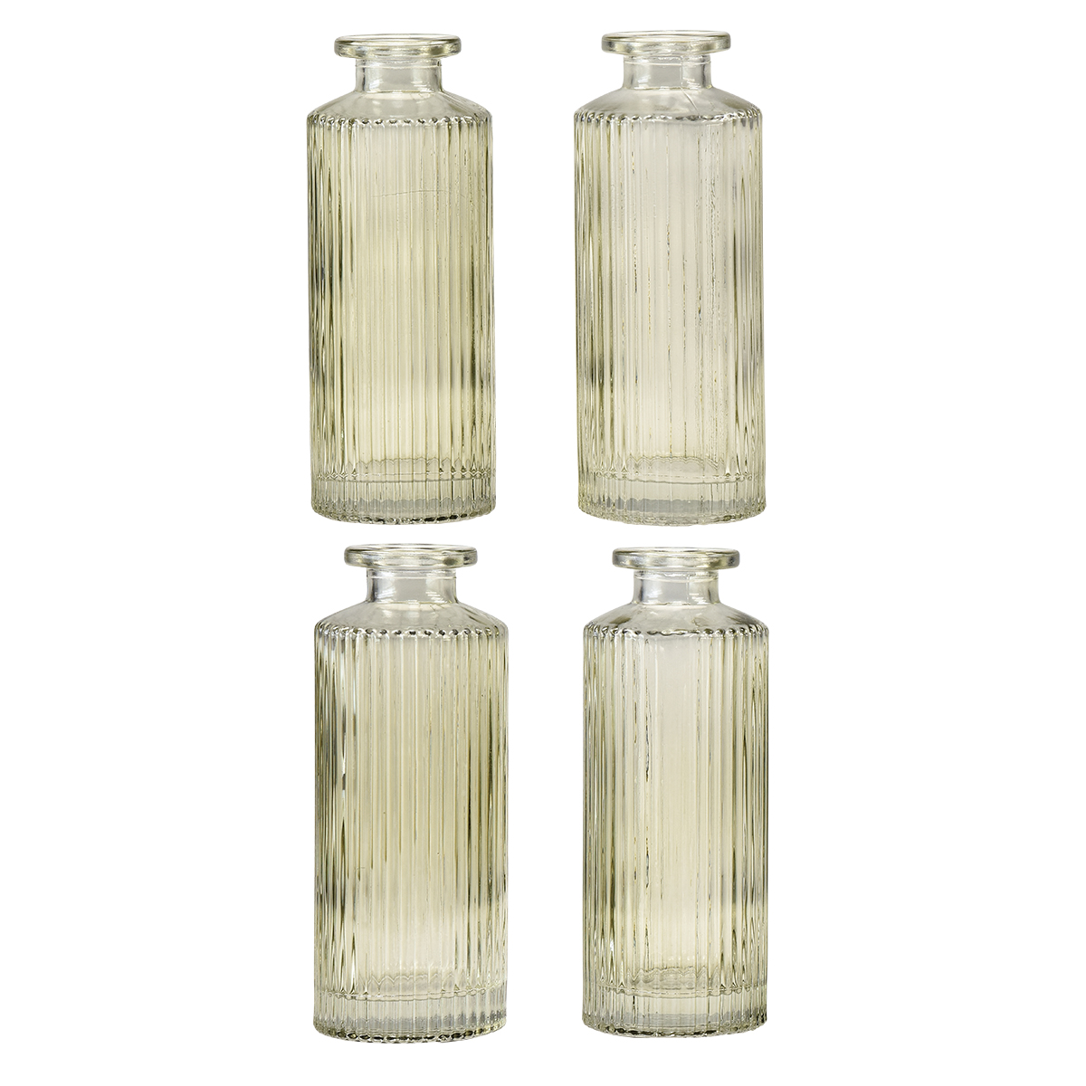 Mini Vasen Glas mit Rillen Retro Blumenvase Grün Ø5cm 4St