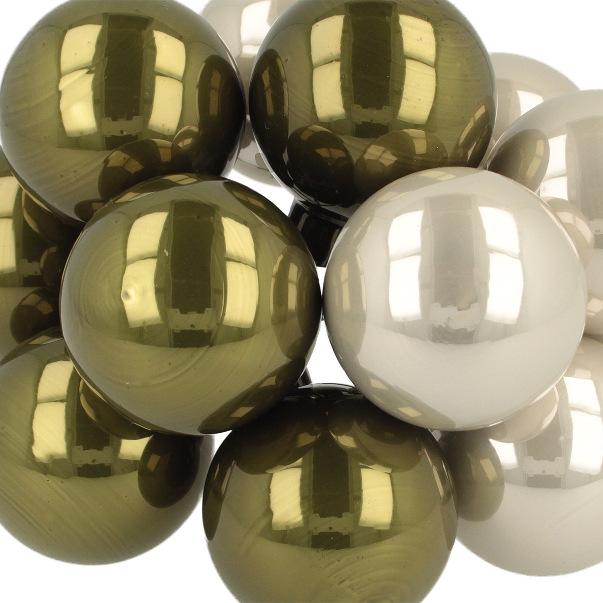Produktname: Weihnachtskugel Glas Spiegelbeeren Oliv Silber Ø40mm 32 St
