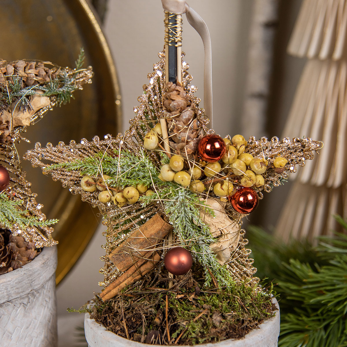 Verwendungszweck: Dekorationsartikel für die Weihnachtszeit und Silvester, inklusive Tischschmuck, Kränze, Figuren, Gestecke, Anhänger und floristische Arrangements.