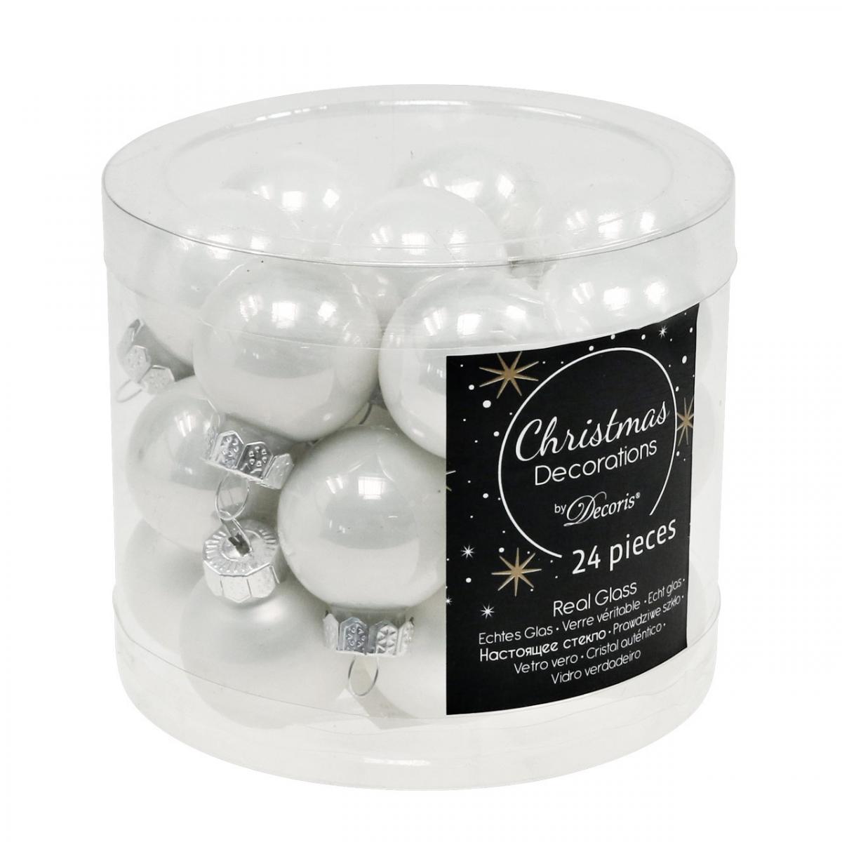 Mini Weihnachtskugeln Glas Weiß Glanz/Matt Ø2,5cm 22 St