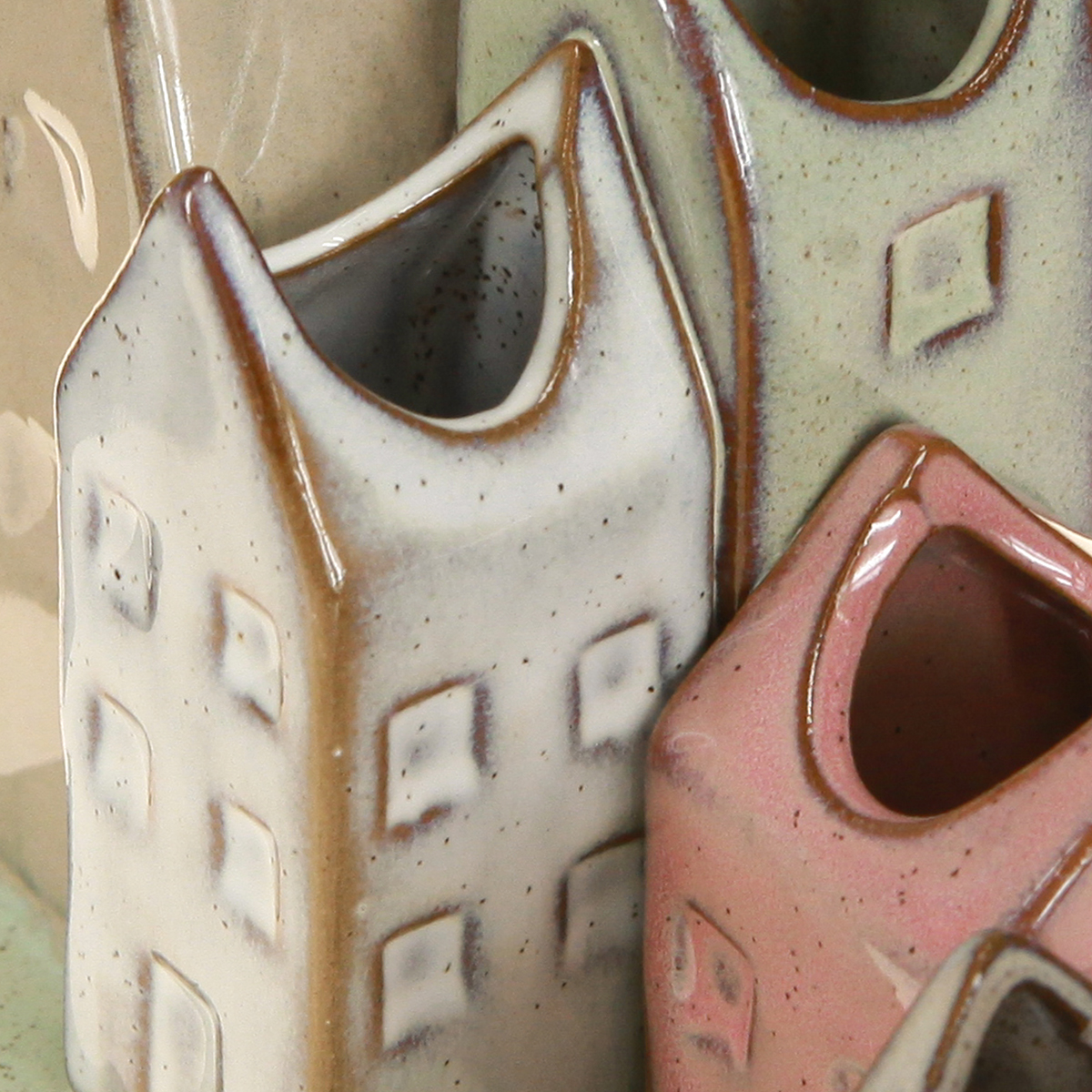 Dekorative Minivasen im Häuserstil – klein, stilvoll und handgemacht