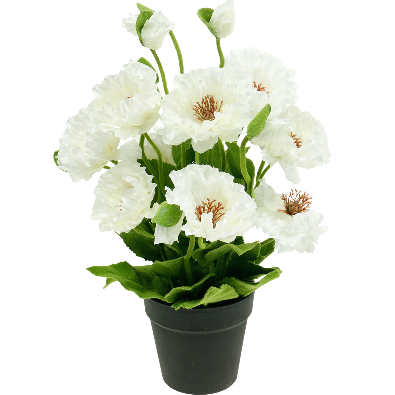 Produktname: Mohn im Topf Weiß Seidenblumen Blumendeko