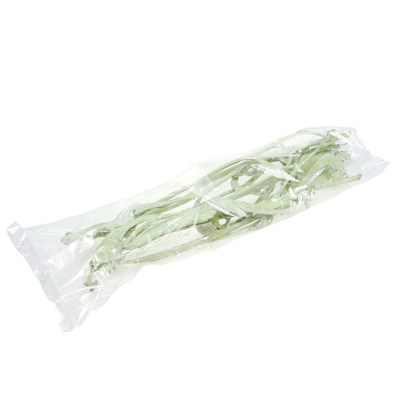 Mit diesem Natraj- beziehungsweise Geweihholz-Mix erhalten Sie in einer Kunststoff-Verpackung 10 apfelgrüne, weißgewaschene Zweige, deren Länge etwa zwischen 20 und 65 Zentimetern variiert.