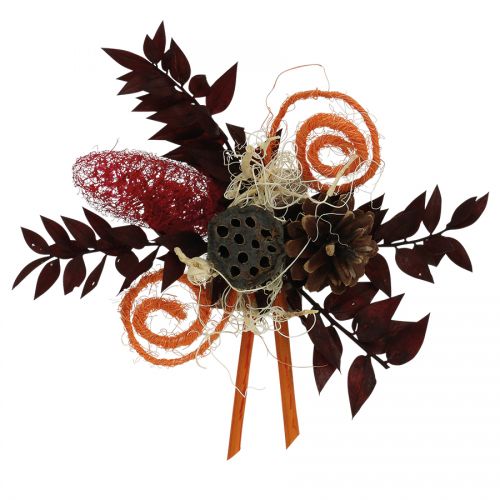 Material: Ruscus-Zweige, getrocknete Achillea, Lotoskolben, Cane Spring, Bergkieferzapfen, Plumosum, Palmspear, Luffa
