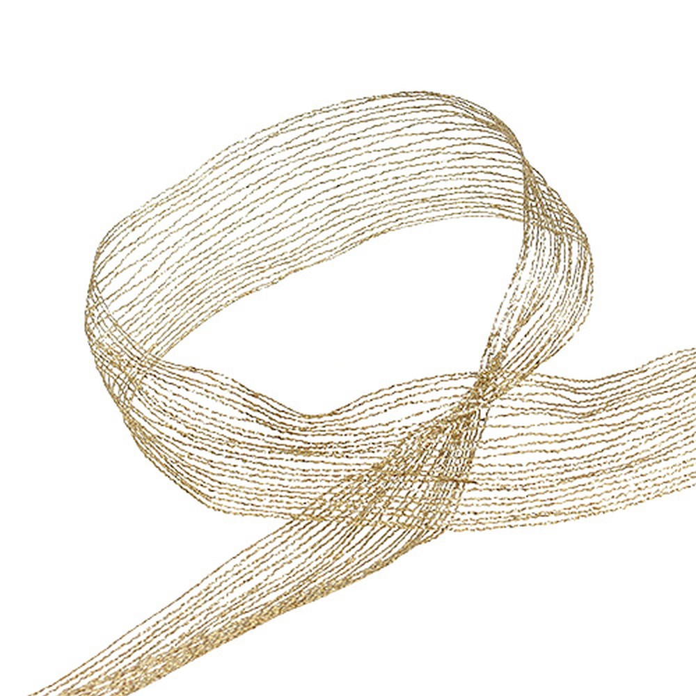 Mit diesem drahtverstärkten Netzband in Gold heben Sie Ihre Weihnachtsdekoration auf ein völlig neues Level. Das glamouröse Schmuckband erinnert mit seinem edlen Goldschimmer nämlich an klassisches Lametta, ist aufgrund der um biegsamen Draht gewundenen Fäden jedoch um einiges vielseitiger und wandelbarer, lässt es sich doch spielend leicht in Form bringen und beliebig arrangieren.Zwischen Lichterketten oder echten Kerzen, um einzelne Tannenzweige gewunden, glänzt das gitterartige Dekoband prachtvoll und ergänzt so perfekt Christbaumschmuck in Gold, Silber, Bronze und Rosé. Auch einzelne Kugeln und Strohsterne können Sie mit dem Band umwickeln und verwandeln so eventuell schon etwas angestaubten Schmuck in exquisiten Tannenbaumbehang für eine warme, stimmungsvolle Atmosphäre. Ebenso gut lassen sich außerdem schlichte Teelichthalter, Glasvasen und Dekoschalen mithilfe des Bandes verschönern. Für das besondere Extra können sie zusätzlich kleine Tannenzweige und Streudeko zwischen die großen Maschen stecken. Oder Sie binden das Schmuckband in luxuriöse Adventsgestecke und –kränze ein oder drapieren es kunstvoll auf der festlich gedeckten Weihnachtstafel. Die Möglichkeiten sind beinahe unbegrenzt und so kommt das goldfarbene Netzband alle Jahre wieder in den verschiedensten Varianten zum Einsatz.