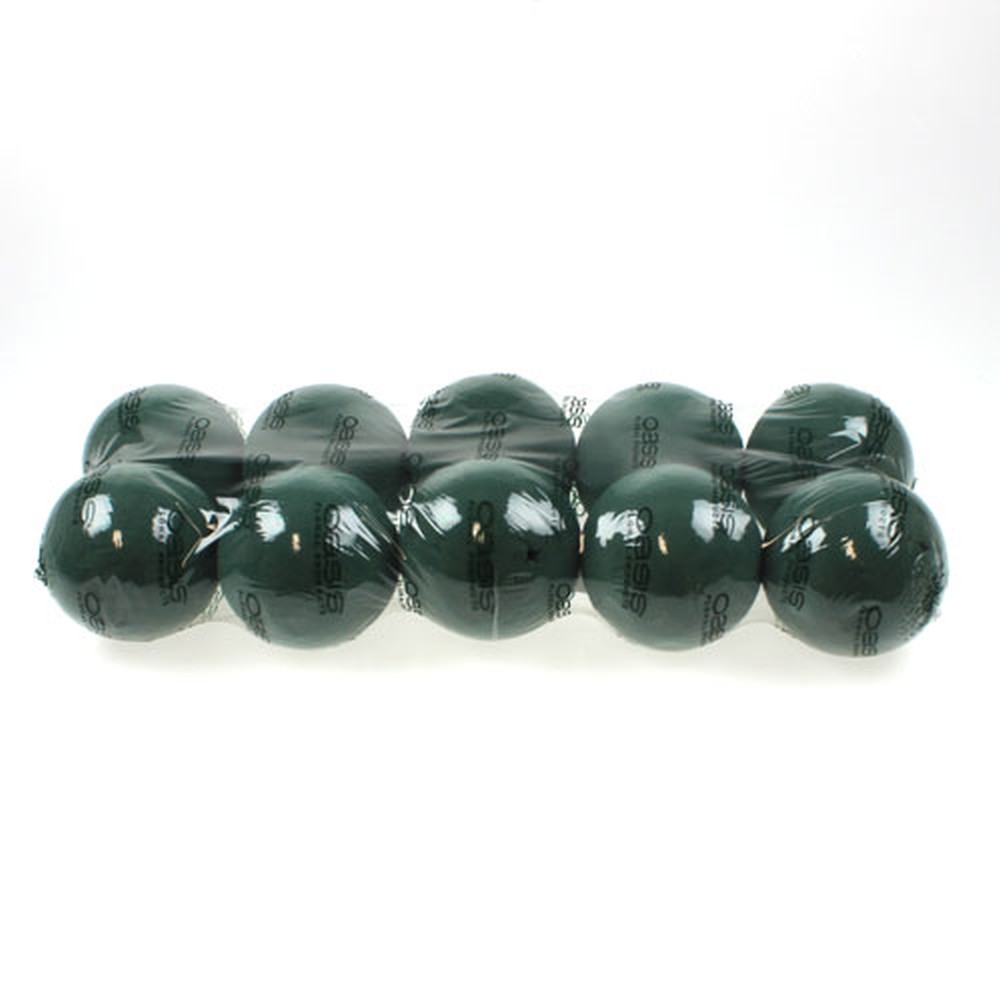 Die mini OASIS® Ideal Kugel aus Maxlife Steckmoos ist zu einem Set aus insgesamt 10 Stück verpackt. Jede Kugel hat einen Durchmesser von ungefähr 9 Zentimetern. Die Steckmasse lässt sich mit einem scharfen Messer bearbeiten. So können Sie die Schaum-Kugeln halbieren oder auch Gesichter hineinschnitzen.