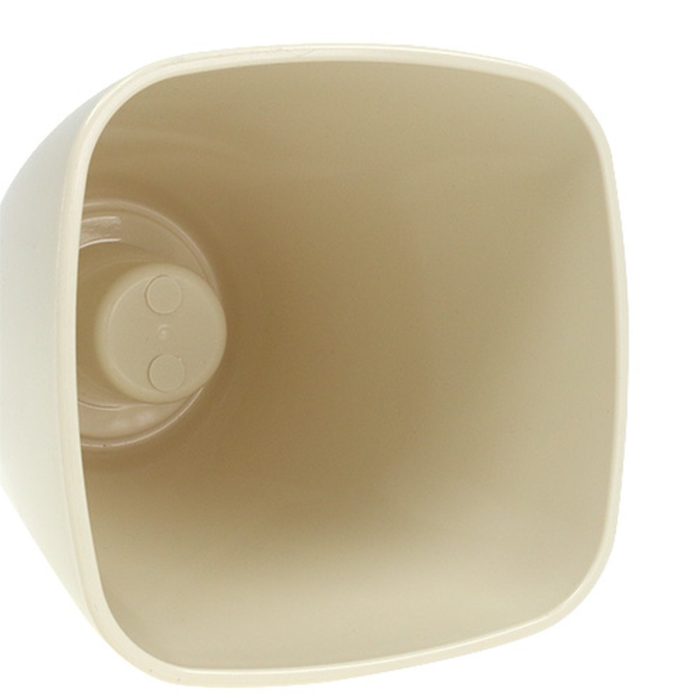 Der glänzende Orchideentopf in der Farbe Sand hat einen Öffnungsdurchmesser von etwa 12,5 Zentimetern, wobei die Stellfläche einen Durchmesser von circa 7,5 Zentimeter besitzt. Die Höhe des Topfes beträgt hierbei ungefähr 17 Zentimeter.