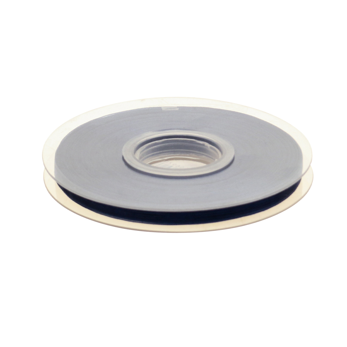 Das Organzaband mit Webkante in Schwarz ist auf einen Ring aus Kunststoff gewickelt, den Sie mit der praktischen Halterung im Inneren auch auf einem Bandabroller aufhängen können.