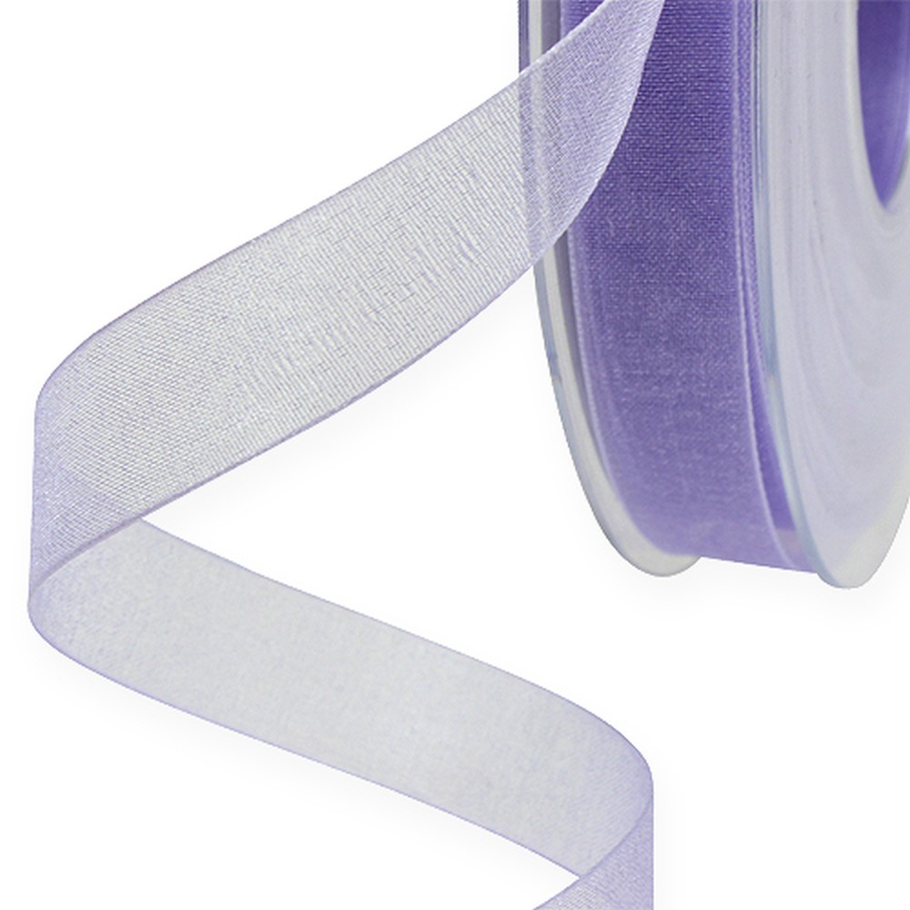 Produktname: Organzaband Geschenkband Lila Band Webkante 15mm 50m